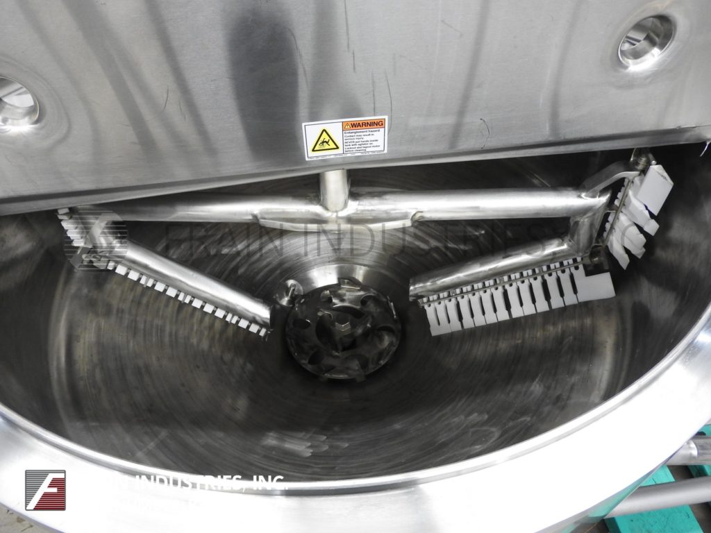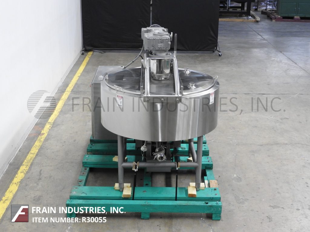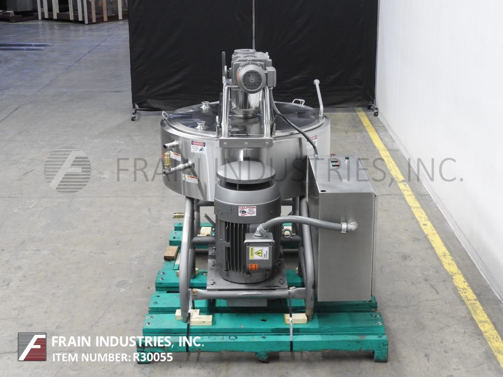 返回所有设备Breddo Model Lorwss,100加仑,不锈钢,高剪切,夹套,液化米,每小时的产品量 - 取决于材料和应用。船舶尺寸为:44“ID x 18”直壁x 22“锥底。扁平顶部带桥式安装3 HP变速刮刮表面搅拌器,双铰链翻转顶盖和(1)2-1 / 2”OD(1)1-3 / 4“OD卫生顶级港口。侧面和底部夹克额定MAWP为125 PSI @ 400°F和0°F @ 125PSI的MDMT,具有(4)1-1 / 2”OD螺纹夹套端口。内部有底部6孔/ 3翼叶轮,具有60 HP变速侧安装电动机驱动。锥形底部具有Thermowell和3-1 / 2“OD侧底放电,18”落地间隙。控制面板具有混频器和泵启动,停止,电子停止按钮控制。安装在(6)腿基框架上。