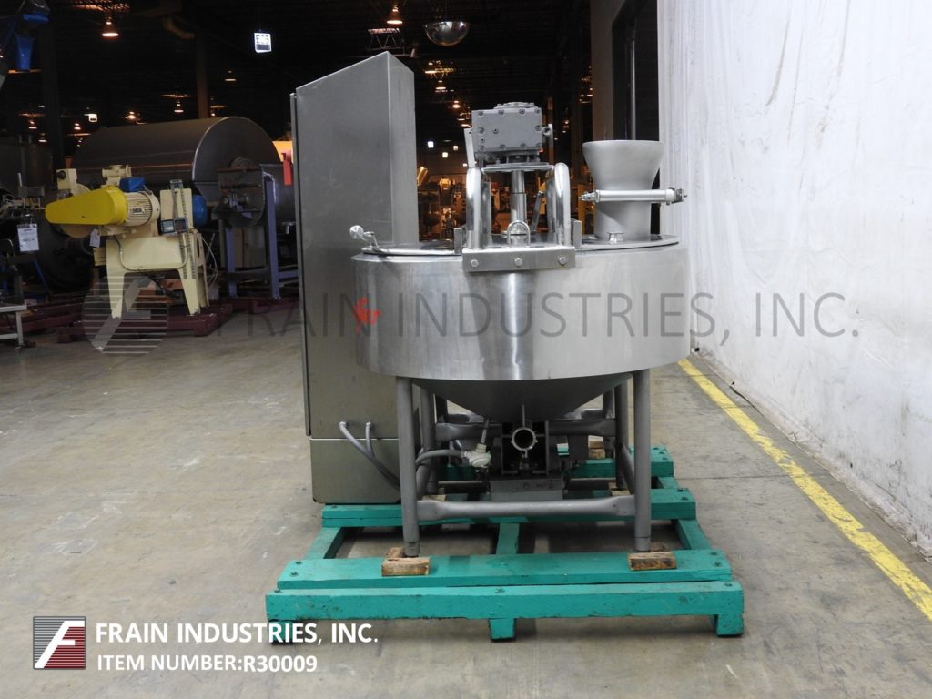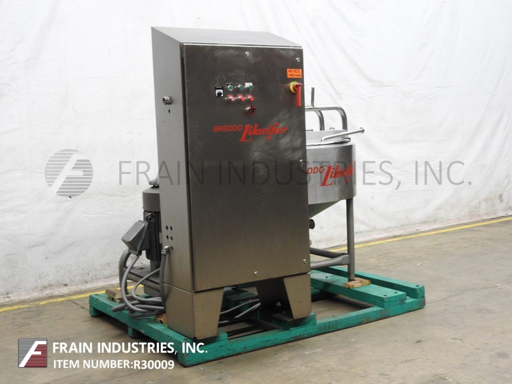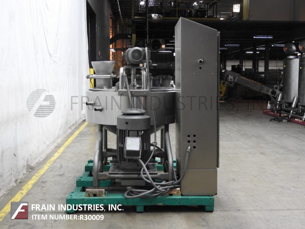 返回所有设备Breddo Model Lorwwss,100加仑,316L不锈钢,夹套,液化米,每小时产品量 - 取决于材料和应用。内部尺寸:48“直径x 19”直壁x 20“长锥。配备铰链顶盖,8-1 / 2“产品入口,带有气动滑动闸门,侧面和底部刮搅拌,底部6孔/ 3翼叶轮和50 HP侧底底安装电动机驱动。全套夹克额定在125PSI @ 400°F带1-3 / 4“入口/插座,锥形底部有2-3 / 4”中心底部放电和16-1 / 4“排放高度的蝶阀。安装在(4)腿基地上。控制面板具有VFD并启动,停止,电子停止控制。国委#21333