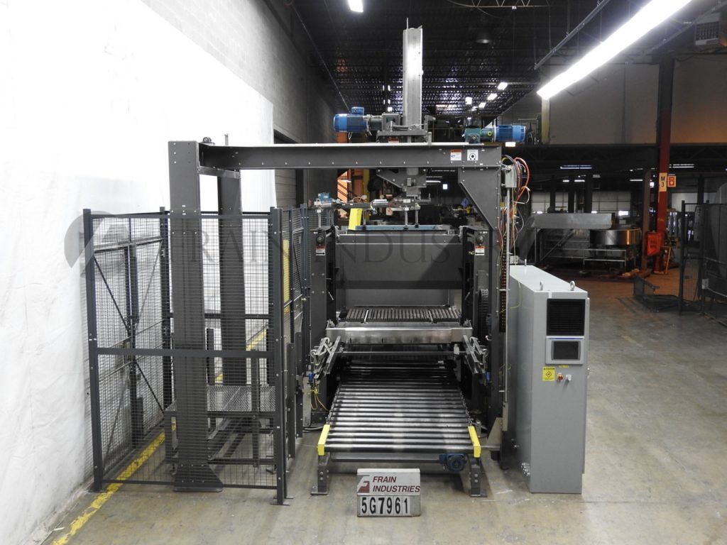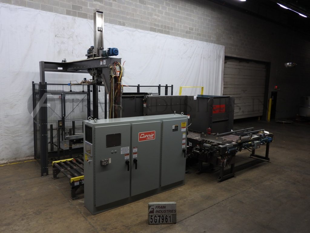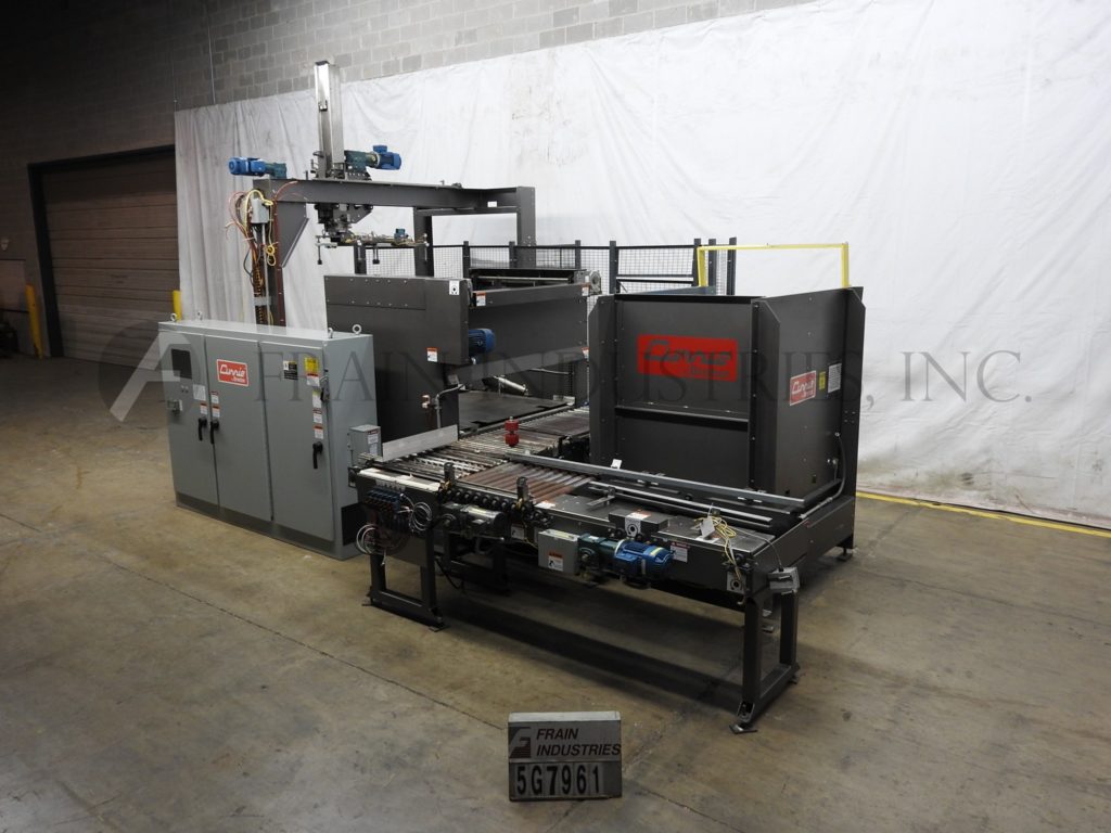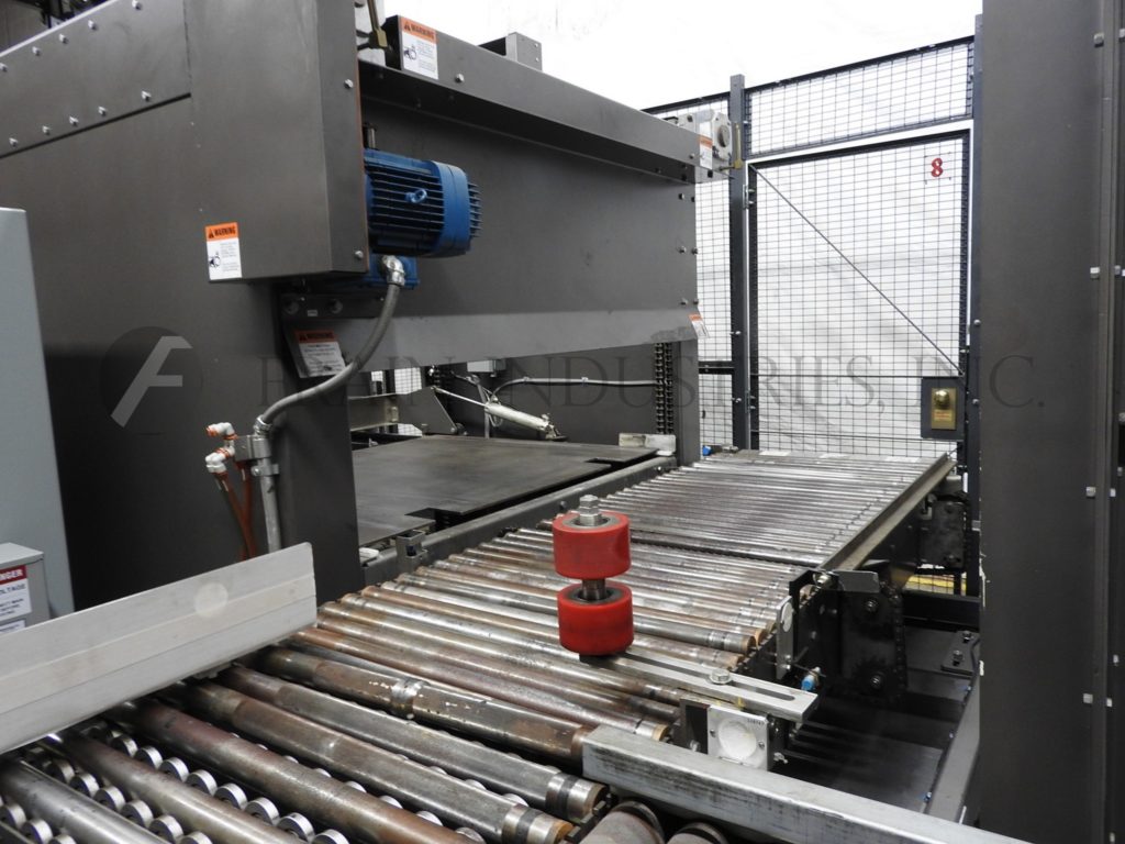 返回所有设备Currie,LLP 21型,低液位,箱堆垛机。每分钟5至15箱-取决于材料、应用和包装模式。箱子尺寸范围:6英寸至24英寸长;宽度为4英寸至24英寸;高度为3英寸至14英寸,负载尺寸为50英寸长x 50英寸宽x 72英寸高,每个负载容量为4000磅。配备带46“宽x 52”深x 60”高空托盘库的托盘分配器,(2)带间距输送机、翻箱输送机、30”宽行成型输送机、52“长x 1½”高行推料器、62“x 48”卸料板、滑板进料器、46“宽卸料板、双50”长层定心导轨,52“宽x 50”长空托盘分段辊道输送机,52“宽x 60”长托盘卸料输送机。控制面板采用AB PLC,配有AB面板View 1000触摸屏控制器和圆形钢丝护板,可安全查看机器运行情况。