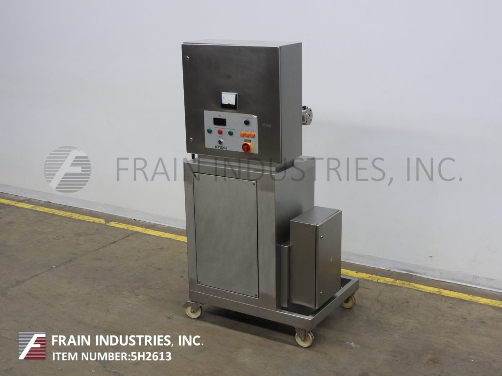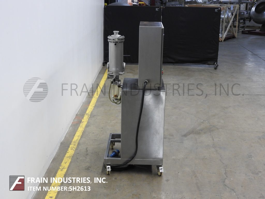 返回所有设备Burdosa, GR80型,内联,连续,动态环路混频器。额定每分钟60至92加仑-取决于材料,应用和机器配置。配备一个8”OD x 16”长的混合室与低压夹套,3”OD / 2”ID阀座斜面式主要充电端口,5½”OD / 1½”ID圆形法兰式二次充电端口和3”OD / 2”ID阀座斜面式排气端口。混合器转子动力由一个5.3马力的驱动器与变速控制。