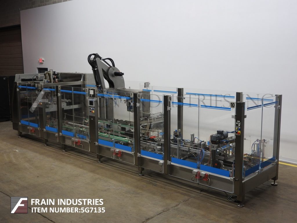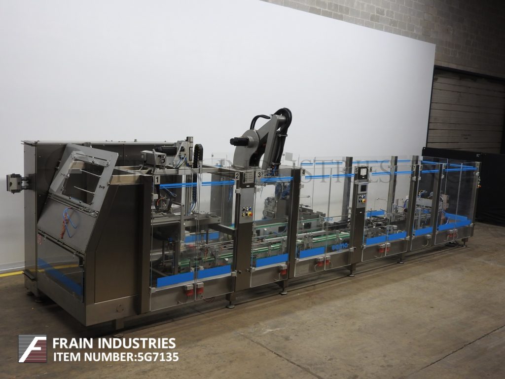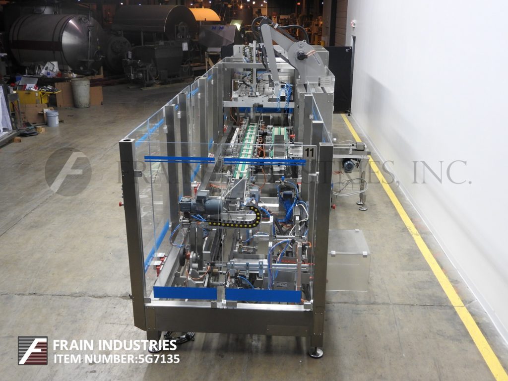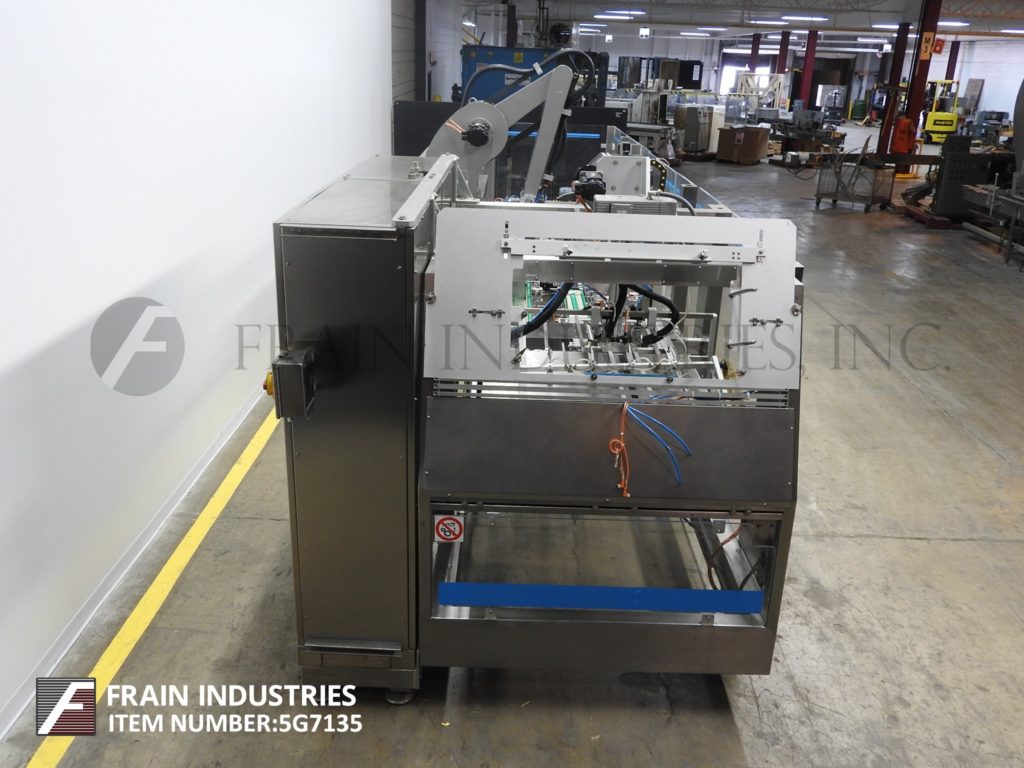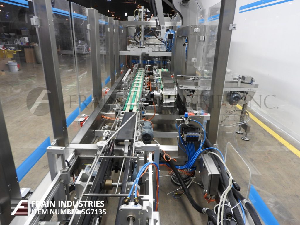 返回所有设备CAMA,IMADE IF297,不锈钢,连帽托盘前,机器人装载机和三级封口机,每分钟托盘数量和产品数量 - 取决于材料,应用,包装模式和机器人行程。产品和案例尺寸范围的每种应用配有空白托盘杂志,(4)吸盘纸张PIC N Place,单一RAM托盘成型头,带热熔胶系统,150英寸长销托盘输送机,套装14个中心,84英寸长品输送机用(8)6“长x 3-1 / 2”宽x 8“深固定产品口袋,单头,2轴机器人产品pic n放装臂,90”长传送输送机通过热熔三密封胶水系统。控制面板具有A / B控制器,具有平面图和触摸屏界面,SEKO仪表和互锁微型开关安全防护。安装在(12)腿高度可调底座上。