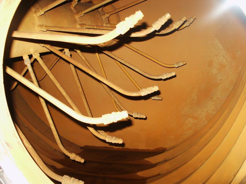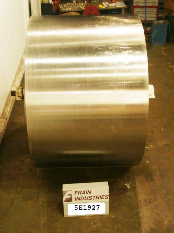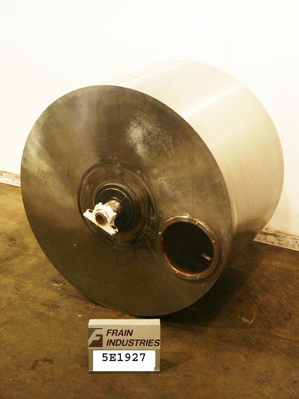 不锈钢,单壁冷却滚筒。滚筒尺寸:51½"表面宽度x 78"直径。配备(2)18”直径的视镜(每一边一个)和(2)2¼”NPT进口/出口的鼓传动轴内部喷雾棒与喷嘴,以喷洒冷冻水在鼓的内表面。最后用于糖果操作。