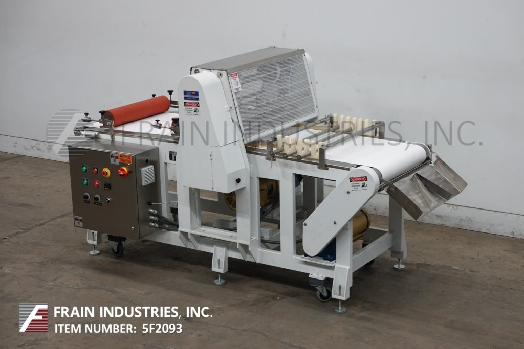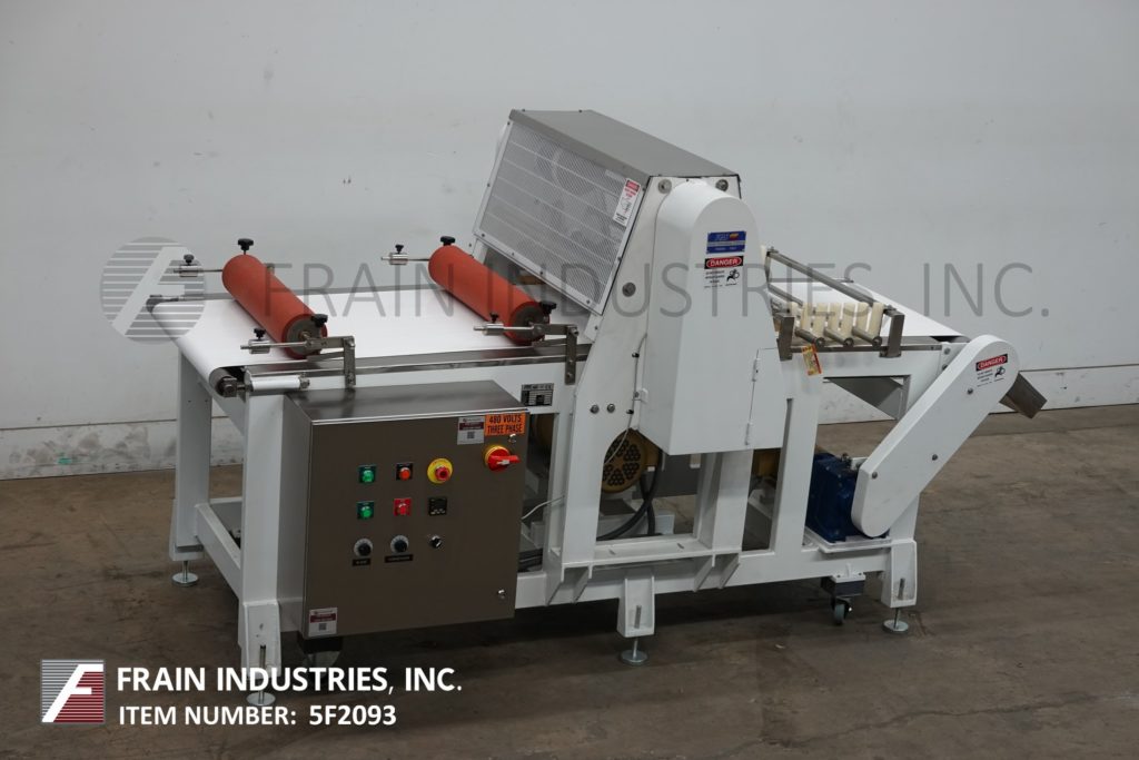 返回所有设备机械鸥氨酸,配备104“长x 25-1/4”宽的蓝色传送带,直径为dual 5”直径x 25-1/2”长的饲料条件滚筒中的长乘积,(3)36英寸长的磁滚子在放电时长磁辊36英寸的饲料和排放高度。24英寸宽切割刀刀片,带有螺栓固定的笼子式安全防护。带切割机周期,输送机,电动机速度,切割头计时器控制和计数器的控制面板。