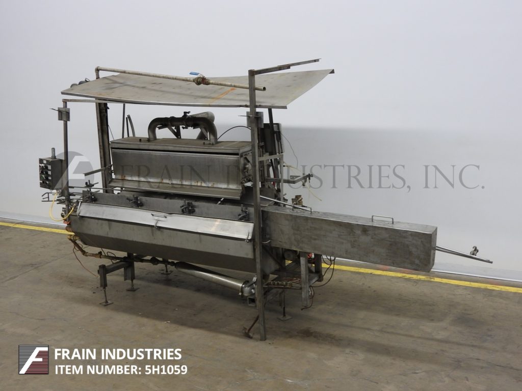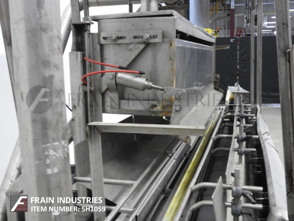 返回所有设备Solbern Model LSB不锈钢,在线接缝钻丛林设计,专为高速重新生产和炒作或添加任何自由流动的液体,如肉汤,到预填充的容器,无溢出,每分钟的容器数量 - 取决于材料和应用。配备58“长x 10”宽x 10“高不锈钢顶部产品罐与60”长进料螺钉穿过填充区域,容器成角度调节头部空间,在离开前精确填充和微小的流量。具有78英寸长x 19“宽x 16”高底不锈钢溢流罐,具有穿孔粒子面板。在离开进料螺杆之前,将螺旋容器间隔开并被缝合器链拾取,提供光滑的转移Spillage。所有不锈钢卫生管道和瓦基锯130 PD泵。安装在高度不锈钢框架上,可调调平腿。