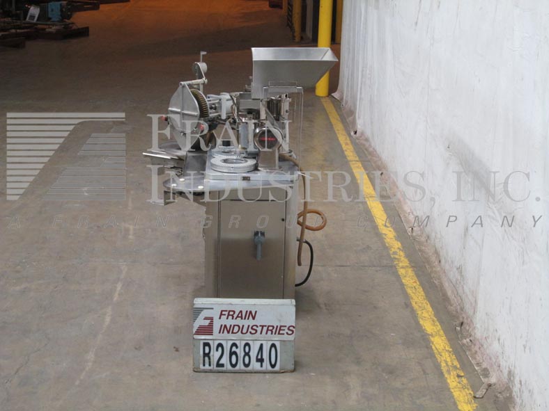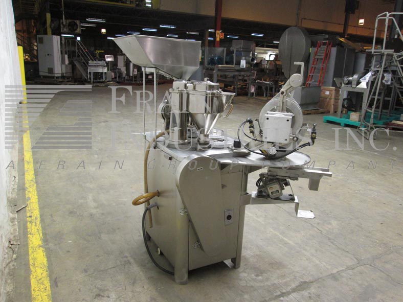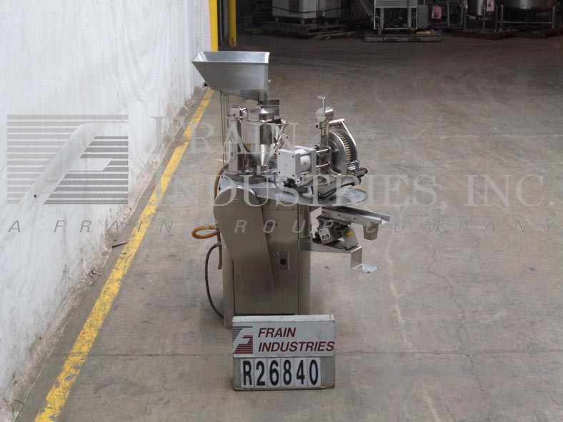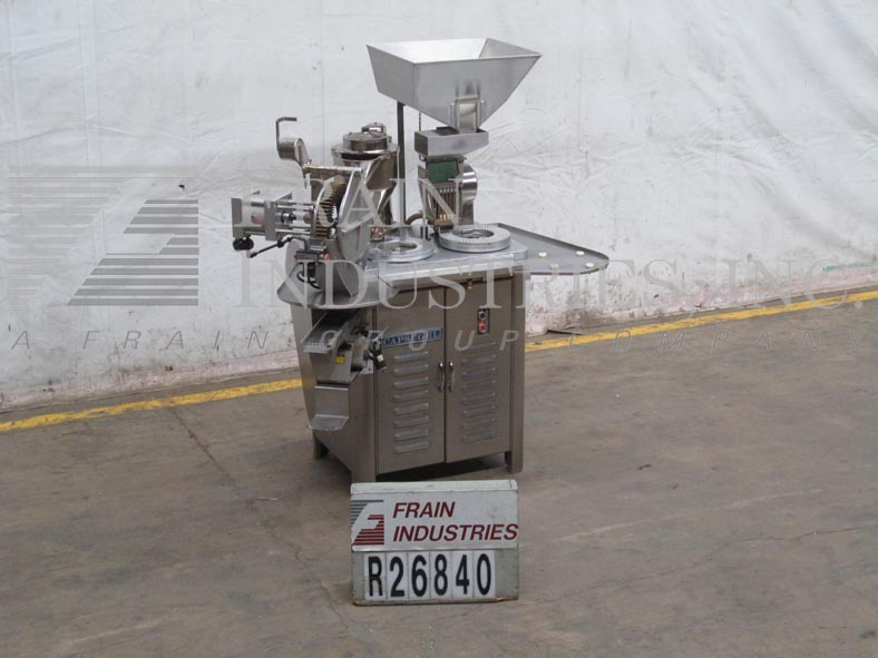 返回所有设备胶囊,8型,半自动,不锈钢胶囊灌装机,额定4,500至33,000胶囊每小时-取决于材料,应用,胶囊大小和操作者灵巧。胶囊尺寸范围:000至5与适当的更换部件。配备18"宽x 20"长x 10"深胶囊料斗,空胶囊杂志,胶囊滑轨和真空整流滚道,1-3/4"真空连接软管。产品环顺时针旋转分度。7"直径x 10"深产品料斗搅拌和气动胶囊关闭组件与按钮控制,Eriez Hi-Vi, 3¼"宽x 16"长振动卸料输送机和启动/停止按钮控制。安装在不锈钢底座上。