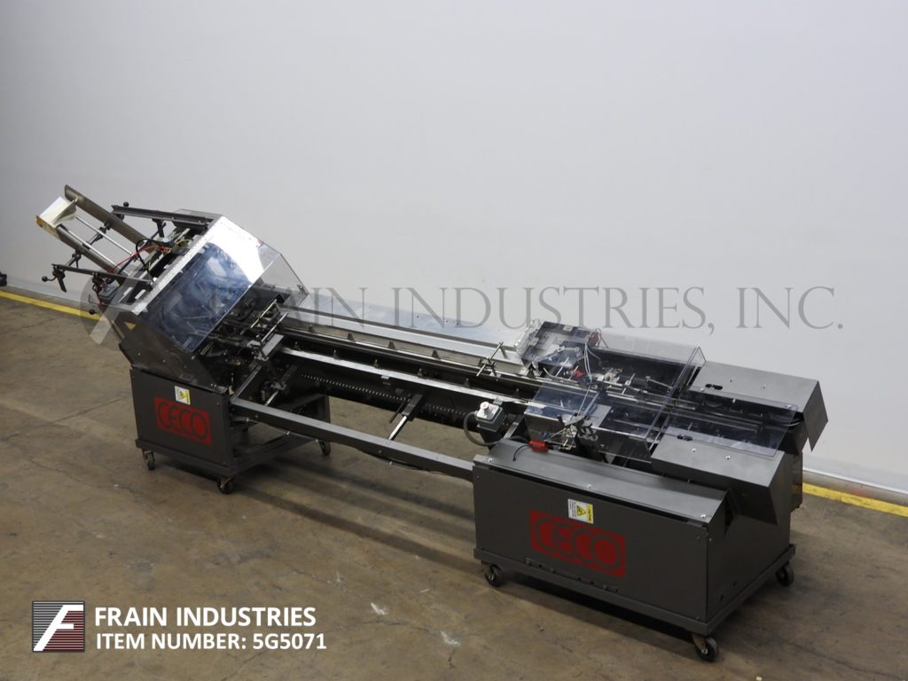 返回所有设备Ceco, 42A型,半自动连续运动卧式胶盒机。根据材料、应用和机器配置,每分钟可装10至50箱。纸箱范围:3"至9"长度;1"至2½"宽度;深度4英寸到12英寸。配备2½"高耳在12"中心,65"长角度负载区域,28"长杂志。