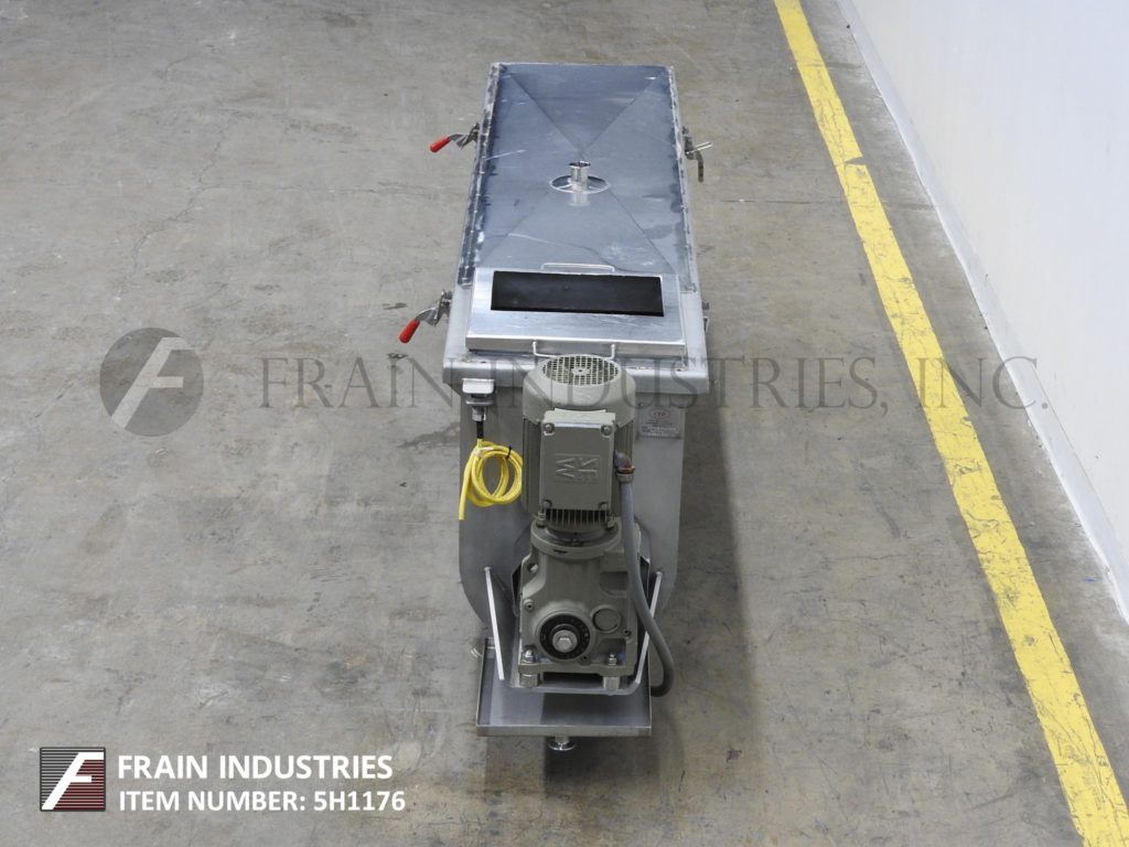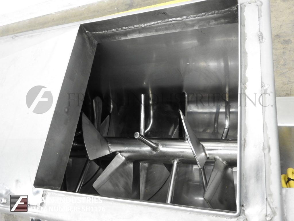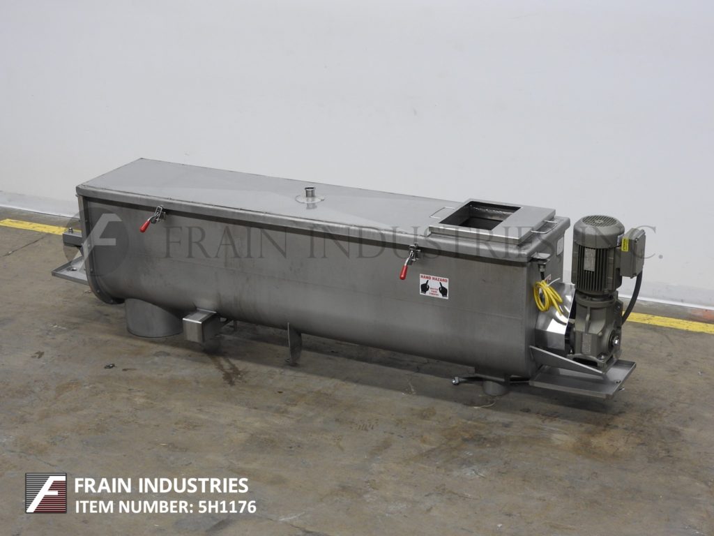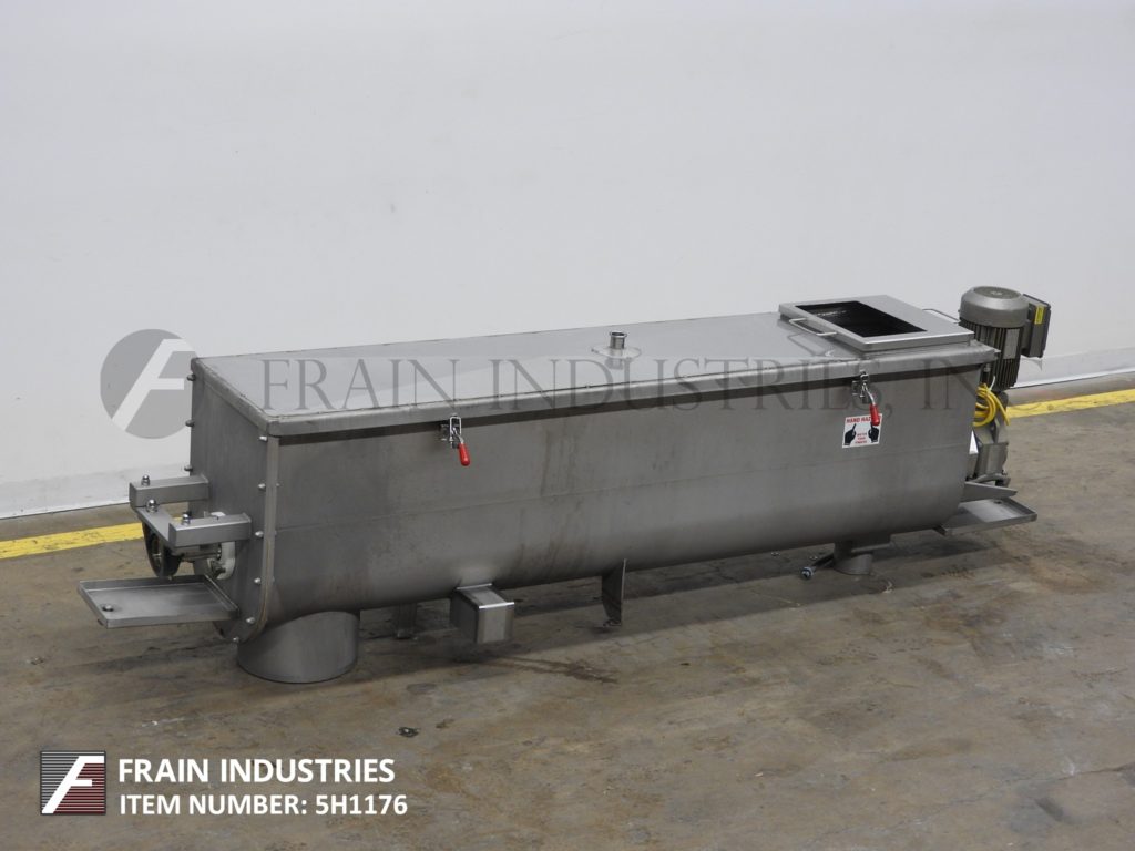 返回所有设备CFR,型号混合输送机,10立方英尺,304 S / S,连续桨式混合器。室尺寸:84" 长×16" 宽×22" 。深配有夹具向下traugh盖,15" 长×14" 宽顶部进料与剥离盖端口,CIP喷由2供给球‘OD / 1 1/2’ID三夹钳式端口和12" 直径端底部排出。31/2“ 直径的混合轴,6" ×7" 桨和H 2” 直径×6" 长销动力由3马力驱动。