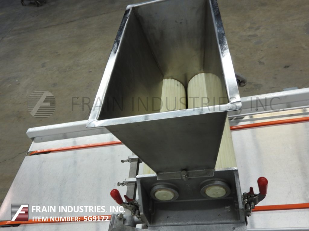 返回所有设备冠军,22“宽面团存款人与磅产品每小时-取决于材料和应用。所有与面团接触的部位及产品区域下方均为卫生设计。配备19”长x 9“宽x 9“深不锈钢,30夸脱产品料斗和(2)62年“长x 1”宽托盘输送带21“宽x 4 1/2“高锅开可以处理锅从17”到19“宽,有34”在饲料和卸料高度。16“宽x 5”OD可调肋产品挤压辊,可以处理大多数面团稠度,无论是常规和硬。用脚轮安装在底座上。BISSC认证。