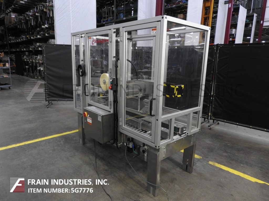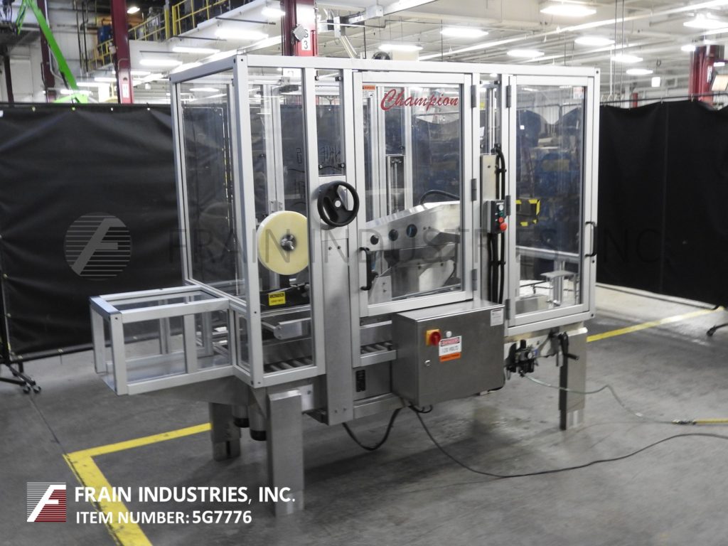 返回所有设备冠军,型号700-FC SS,自动,不锈钢,可调,顶壳锥度。根据材料和应用,每分钟5至75英尺/分钟。案例尺寸范围:长度为5“至24”;5“到20”的宽度;5“到20”高度。配备气动门壳指数,72“长x 2”宽侧夹具带。前2个“磁带头,手曲柄高度可调。控制面板具有启动,停止,电子停止控制。安装在不锈钢基架上,安全守护和(4)高度可调节腿,带脚轮。