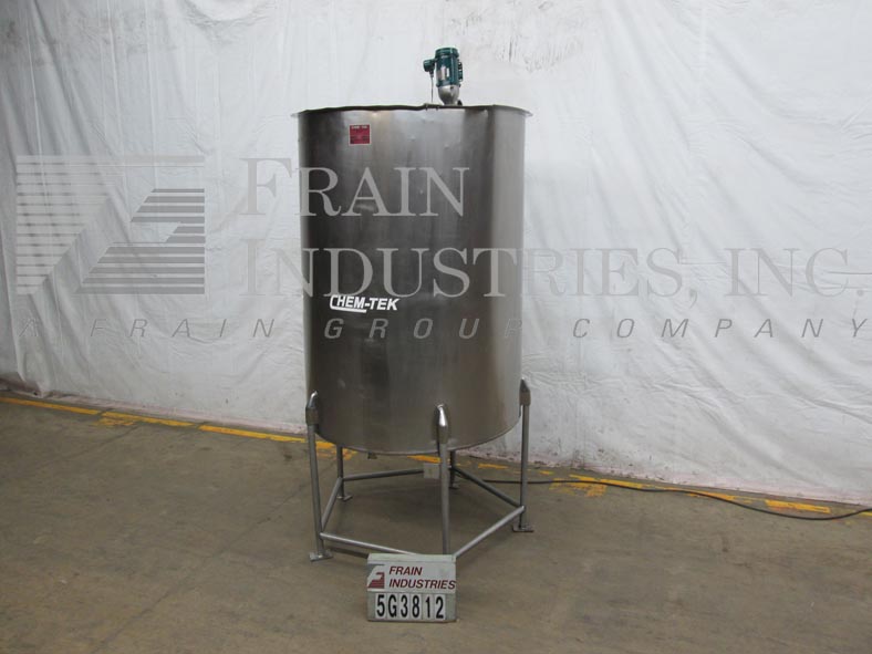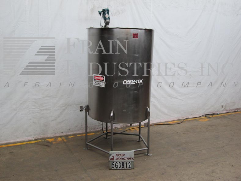 返回所有设备Chem Tek,型号OVS,1000加仑,不锈钢,单壁混合罐。62“直径x 80”直壁。配有平坦的顶部,侧面贴装搅拌支架,带3/4 HP双支链灯亮型搅拌机。倾斜底部有2“ID,2.5”OD卫生侧底部放电,32“落地间隙,并安装在(5)不锈钢臀部腿上。