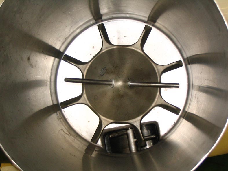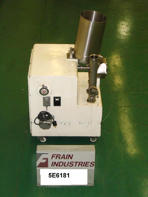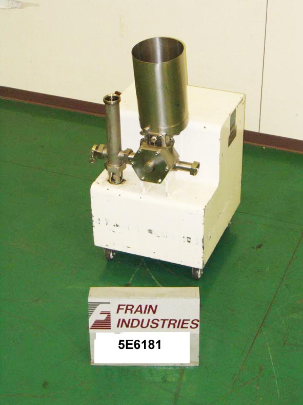 Back to All Equipment樱桃LCIF4 Burrell模型,低容量stainless steel ingredient feeder with a 3/4 cu.ft. hopper. Features gentle mixing action in the hopper with bottom scrape, 2-3/4" diameter separate in-line mixing chamber and positive displacement incorporation pump. Features 2-1/2" diameter product inlet, and 2-1/2" diameter product outlet. Powered by a Reliance Electric motor. Mounted on a painted steel frame with four casters. Designed to add wet or dry ingredients to a stream of product.