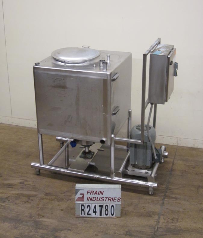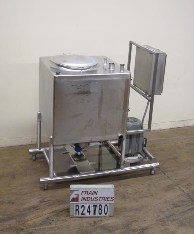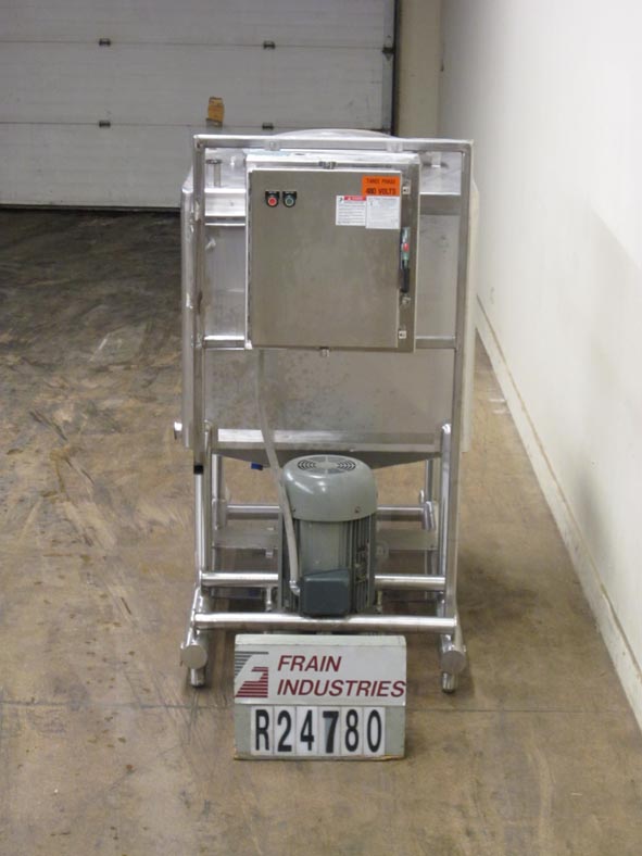 返回所有设备樱桃卷发200加仑,304不锈钢,高剪切,单壁液化师每小时加仑产品 - 取决于材料和应用。腔室调光:40“长度; 40”宽;32“直墙; 16”倾斜锥底。配备24“ID Manway,带有翻盖顶部,螺栓盖板和(1)3”,(2)2-1 / 2“和(1)2”OD卫生顶部端口,喷射球和(1)2-1 /2“OD卫生侧底部端口。锥形底部有14个”od高剪切6孔/ 3翼叶轮,并且具有2“OD卫生中心底部排放口,带有19”楼层清晰度,带有启动/停止推动瓶的控制箱。安装在不锈钢管状底座上。