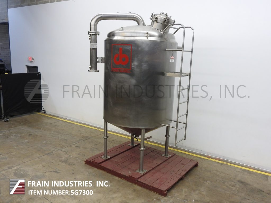 返回所有设备樱桃骨折,1200加仑容量,316不锈钢夹套和绝缘罐。船舶尺寸:66“直径x 80”深,锥形底部深。配备18英寸“直径通道,螺栓向下盖,(2)热电偶,(2)4”直径瞄准镜,2“OD /1½”ID Tri-Clamp连接,用于CIP喷射球和壳管热交换产品饲料一个11“OD 8-BOLT法兰。安装在(4)腿上安装有4英”OD / 4“ID Tri-Clamp风格底部放电,24”地间隙。