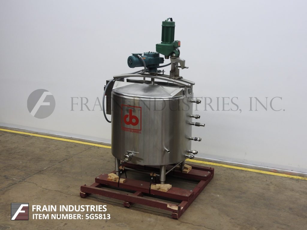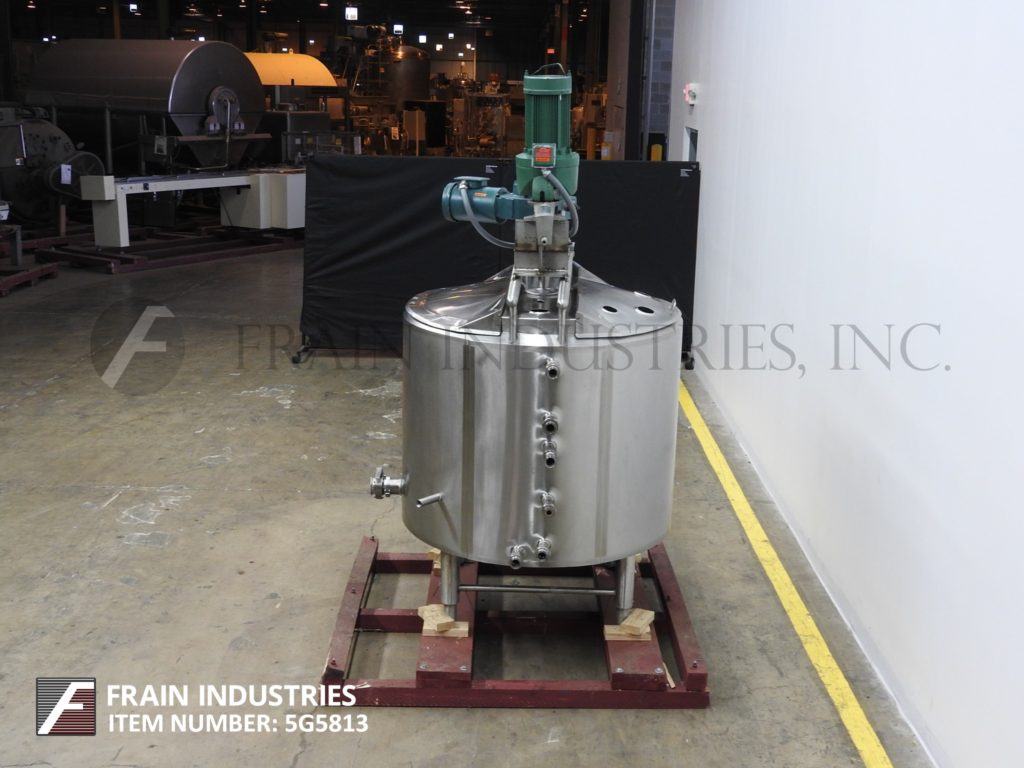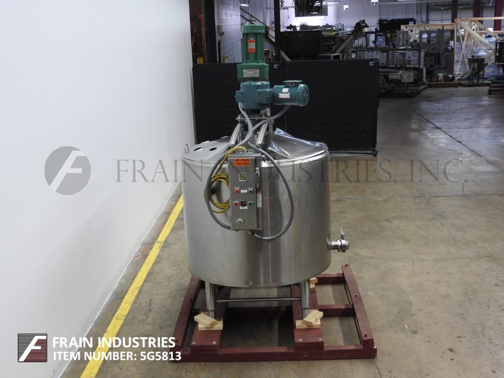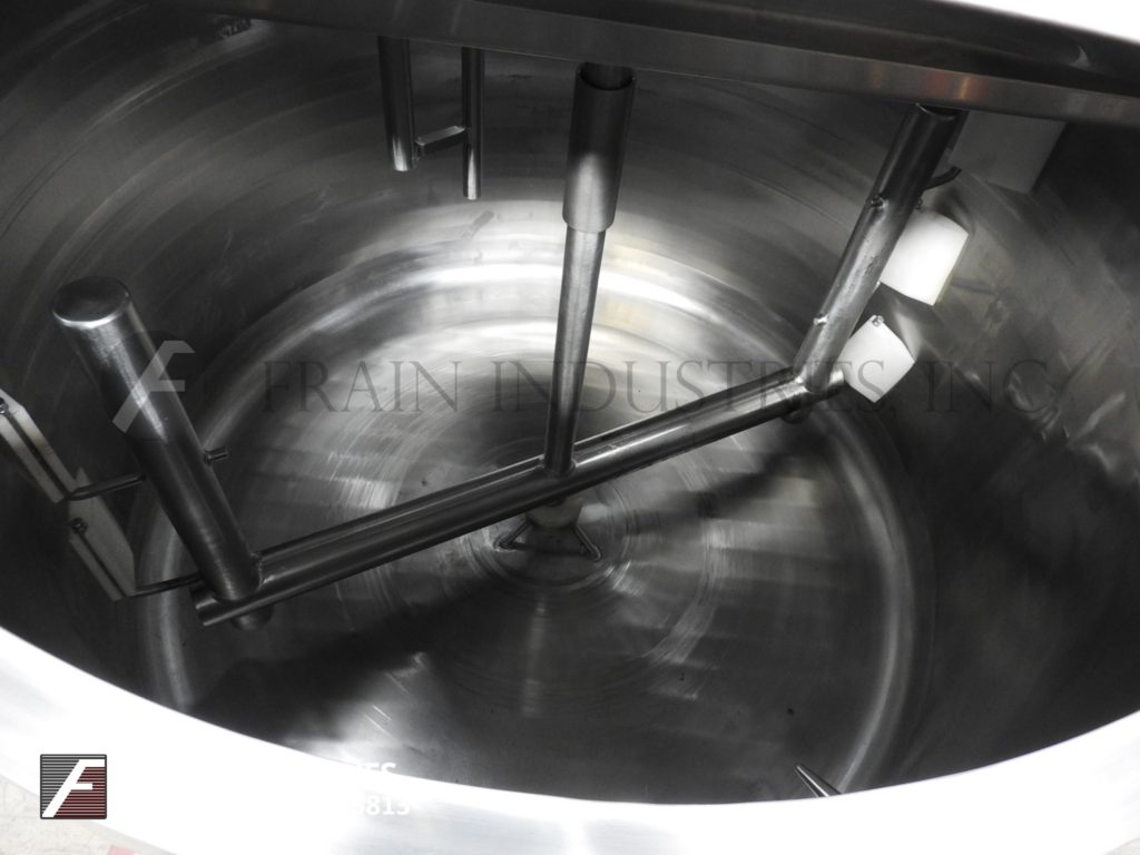 返回所有设备Cherry Burrell, 250加仑容量,304不锈钢夹套和绝缘工艺罐。容器尺寸:48"直径x 32"深。配备3区夹套,温度计套管,提升盖,倾斜底部,2hp顶部安装刮桨搅拌器,3½Hp 6”直径支柱搅拌器,和3½”外径/ 3”ID三卡箍式底部侧排放蝶阀和19”地间隙。