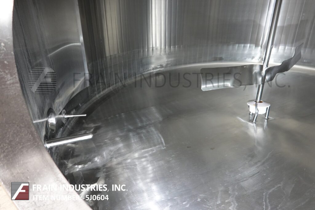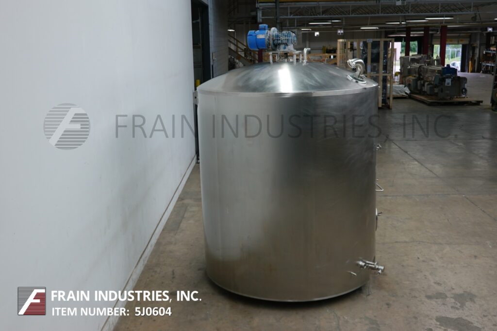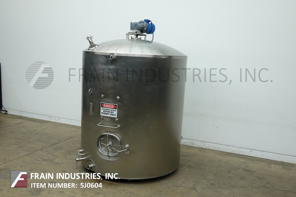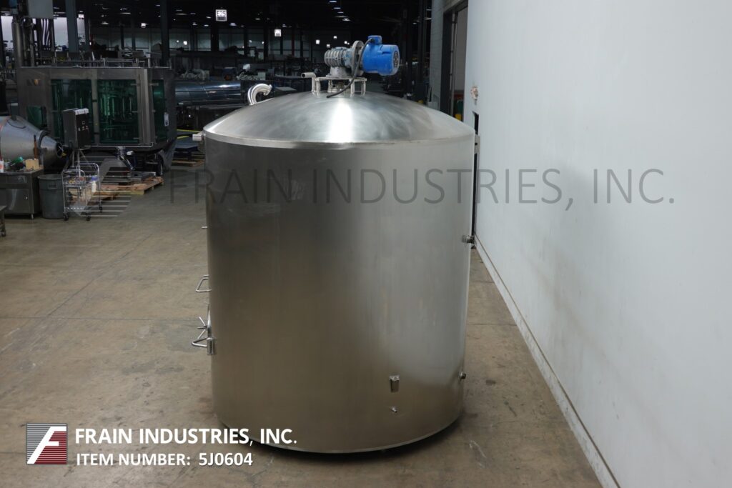 回到所有设备Cherry Burrell, 2000加仑,304不锈钢,护套和绝缘罐。容器尺寸:84"直径x 88"直壁。配置圆顶顶,斜底,底部扫动,由2马力驱动器驱动,20”x 16”侧人道,带螺栓向下盖,(3)温度计套管,CIP喷雾球和3½”外径/ 3”ID三夹式底部放电,具有5½”接地间隙。