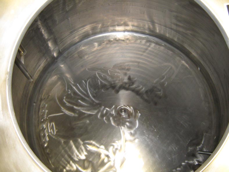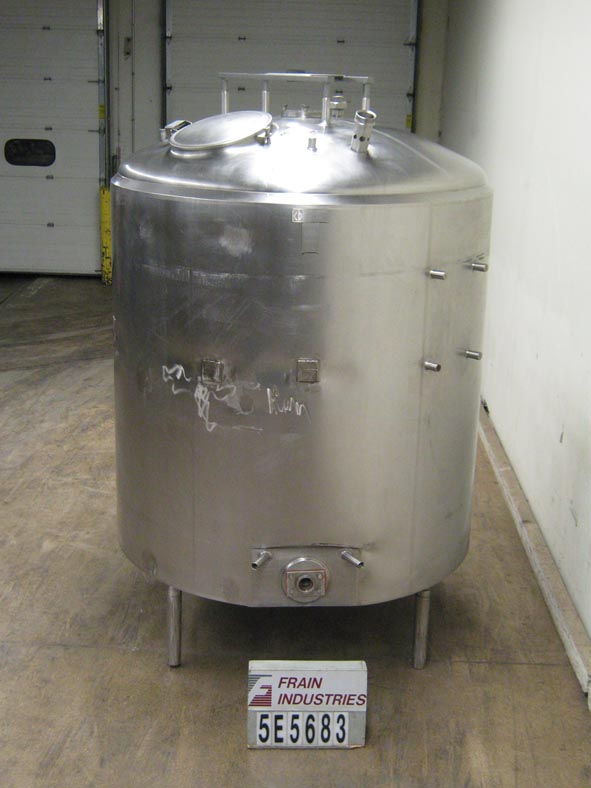 Back to All EquipmentCherry Burrell, 1000 gallon, 304 S/S, 3 zone, low pressure 15 psi jacket, tank. 74" dia x 74” straight wall, dome top, has 18" man way, with flip top bolt down cover, CIP spray ball, and single stationary baffle, (2) 2 3/8", (1) 3 1/2" OD sanitary and (1) 3 1/3 OD threaded top ports. 2" ID threaded jacket ports. Slant bottom has 3" OD side bottom sanitary discharge with 24" floor clearance. Mounted on (4) stainless steel legs.
