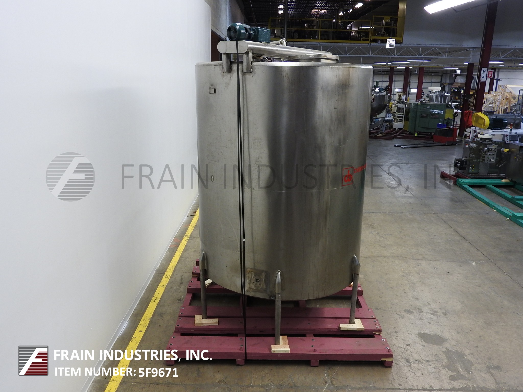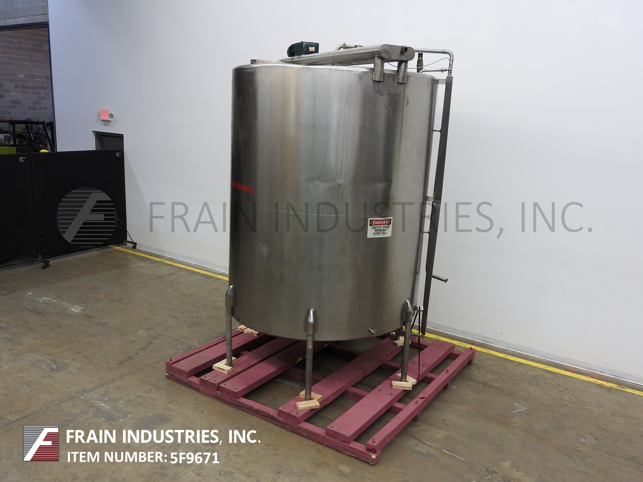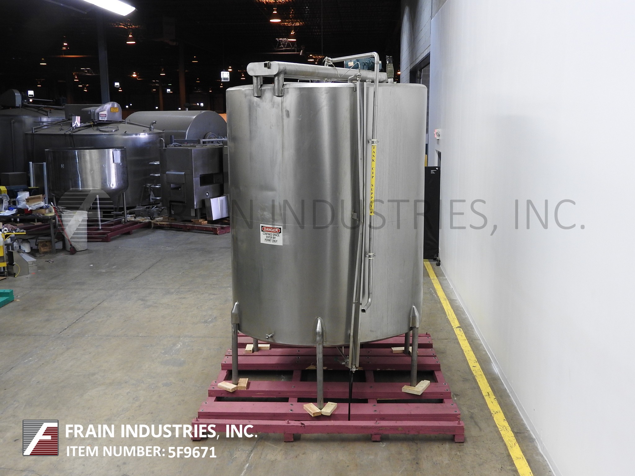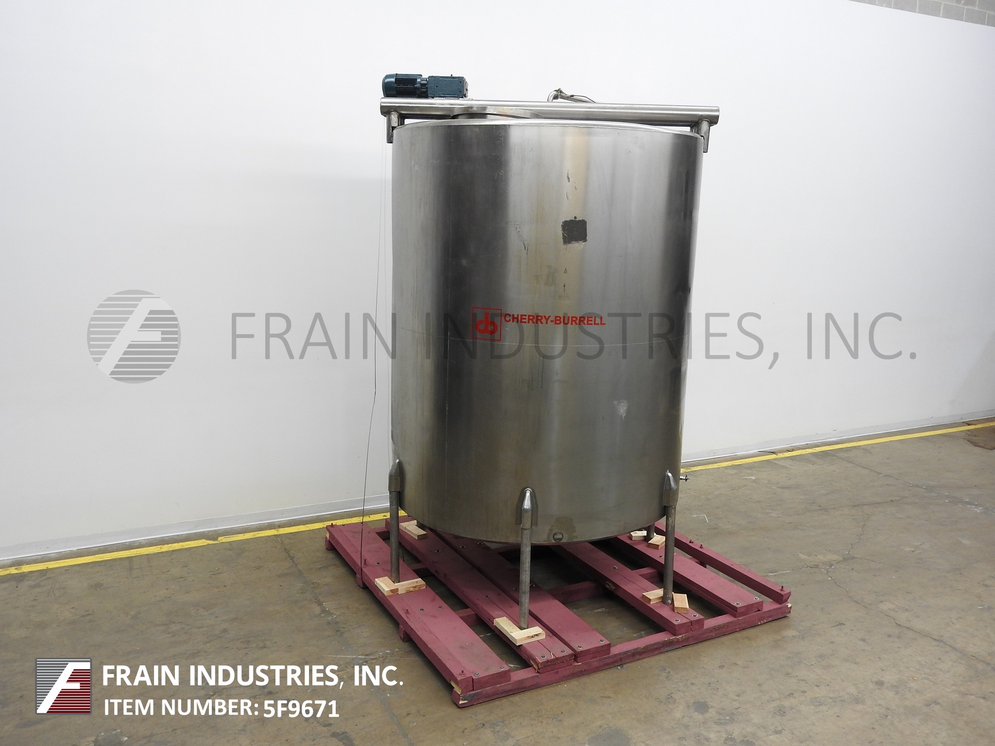 返回所有设备Cherry burrel 2000加仑,304不锈钢,单壁搅拌槽。80“内径x 100”直壁。配备平顶和桥安装双桨搅拌8“长× 4”宽桨84“长轴。22"人字形通道,带升降盖和(1)2-1/2"外径卫生级顶部进口,(1)2"和(1)3"外径螺纹顶部进口。斜底具有3”外径卫生底部侧排放,8”地板间隙和(2)2-1/4”外径螺纹底部端口。安装在(6)髋臼不锈钢腿。