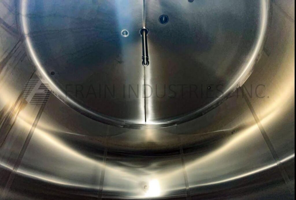 Back to All EquipmentCherry Burrell, 5,000 Gallon, 304 stainless steel tank. Vessel Dimensions: 106" diameter x 110" straight wall. Equipped with a dome top, dish bottom, 16" x 20" side manway with bolt down cover, 6½"OD / 6"ID Tri-clamp style bottom discharge with 50" ground clearance.