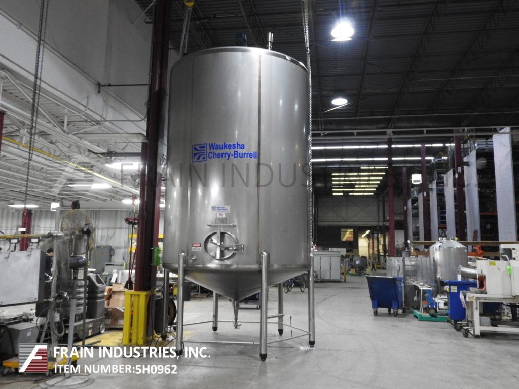 返回所有设备Cherry Burrell, 6000加仑,304不锈钢,单壁搅拌槽。容器尺寸:110"直径x 144"直壁。配备圆顶顶部,碟形底部,20" x 16"侧人孔与螺栓下盖,桨搅拌由2马力驱动,温度计,压力传感器,CIP喷球提供2"OD / 1½"ID三钳配件和4½"OD / 4"ID三钳式底部放电28"地间隙。