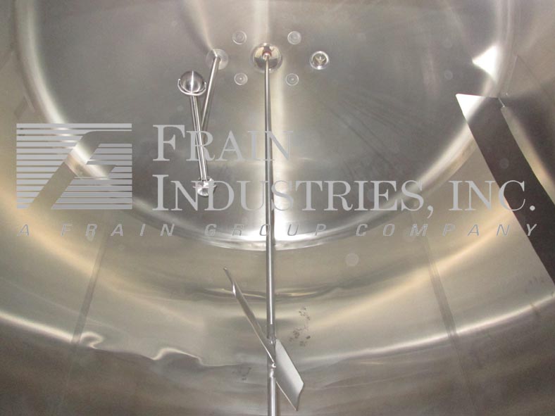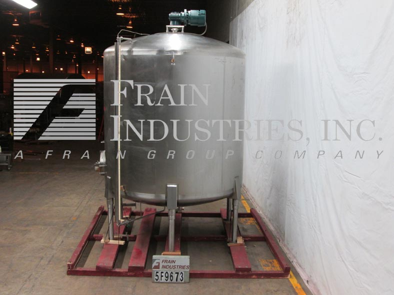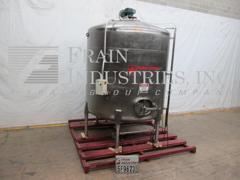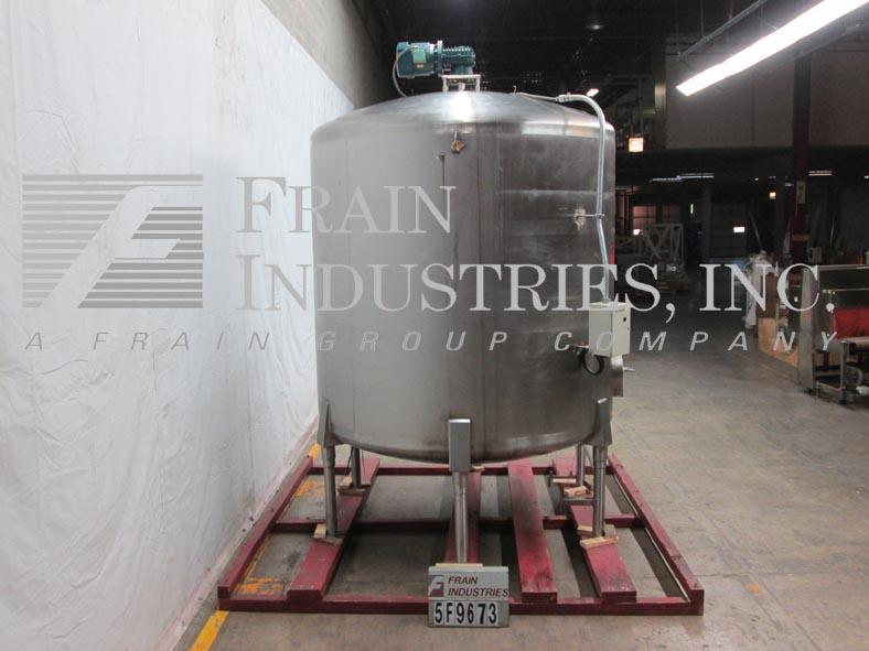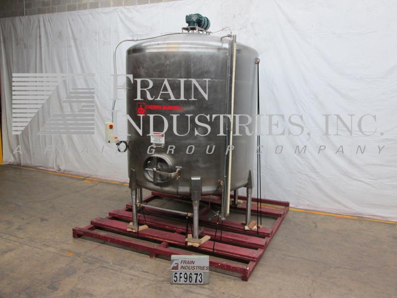 返回所有设备Cherry Burrell模型CV,3000加仑,304不锈钢,单墙,混合罐。96“ID x 100”直墙。配有圆顶顶部的中心顶部安装的桨式搅拌器,具有2个HP电机驱动器和变速控制器。(1)2" ,(1)3" OD卫生顶部端口,内固定挡板和CIP喷球,侧底部20" ×18" 人孔与翻盖打开的锁下罩和侧安装加仑计。盘底有2-3 / 4“OD卫生中心底部放电,16”楼层间隙和(2)2-1 / 4“OD螺纹底部端口。安装在(6)臀部插座不锈钢腿上。