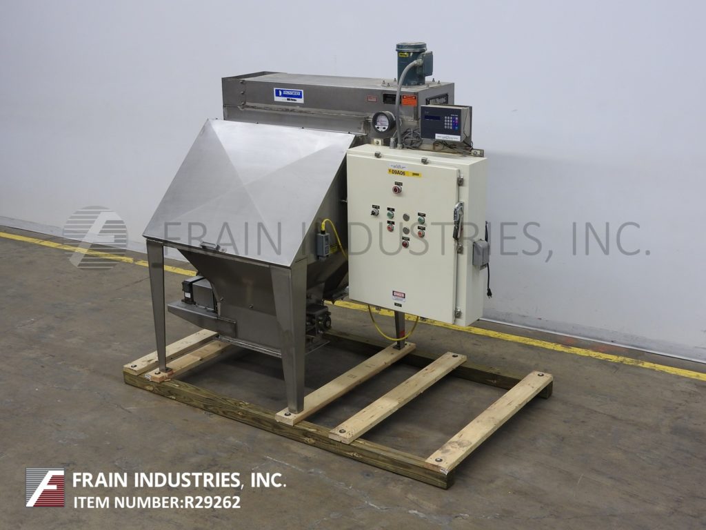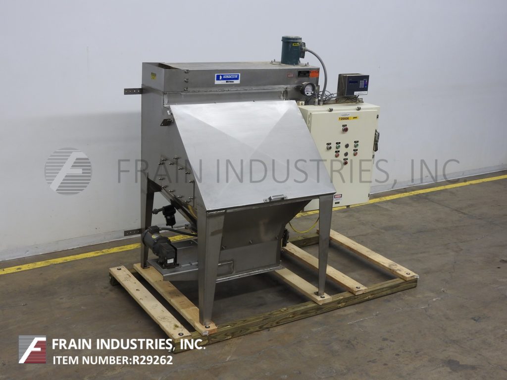返回所有设备户型MI-1010,不锈钢,自用袋卸载和灰尘收集系统,每小时磅产品 - 取决于材料和应用。配备45“长x 36”宽产品袋卸载端口,带有倒装盖X 30“深金字塔形料斗,磁性安全网格和底部7”OD产品螺杆放电,带3/4 HP电机驱动器和板载8袋带顶部安装的1.5 HP风扇电机驱动器和梅特勒 - 托莱多Lynx的灰尘收集器称重秤系统,带控制器和读数。控制面板具有循环定时器,风扇和删除器启动/停止,放电打开/关闭开关,混音器启动/停止和与代顿照片Helix Guage的电子停车控制。安装在(4)腿不锈钢基架上。