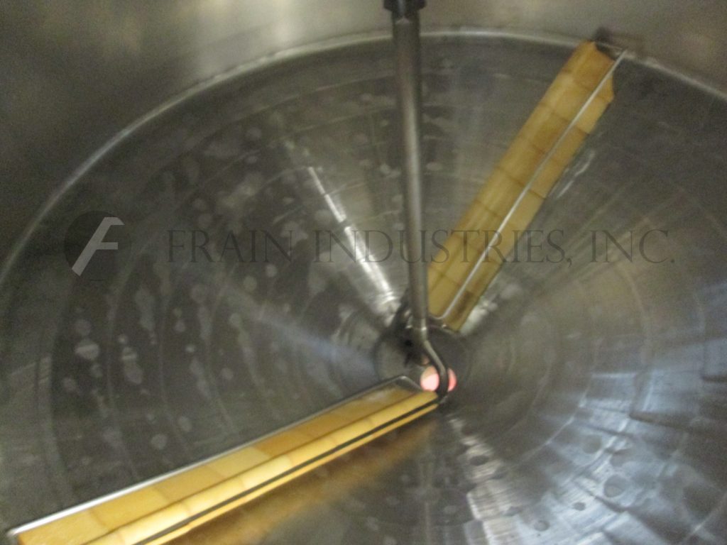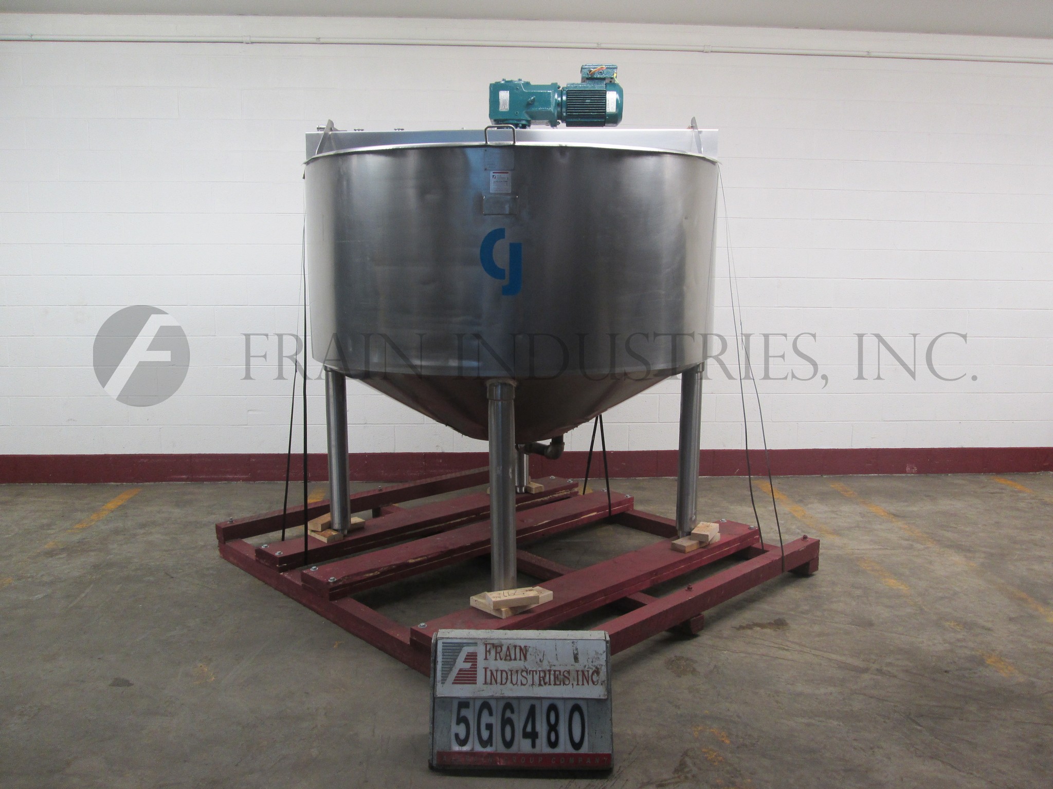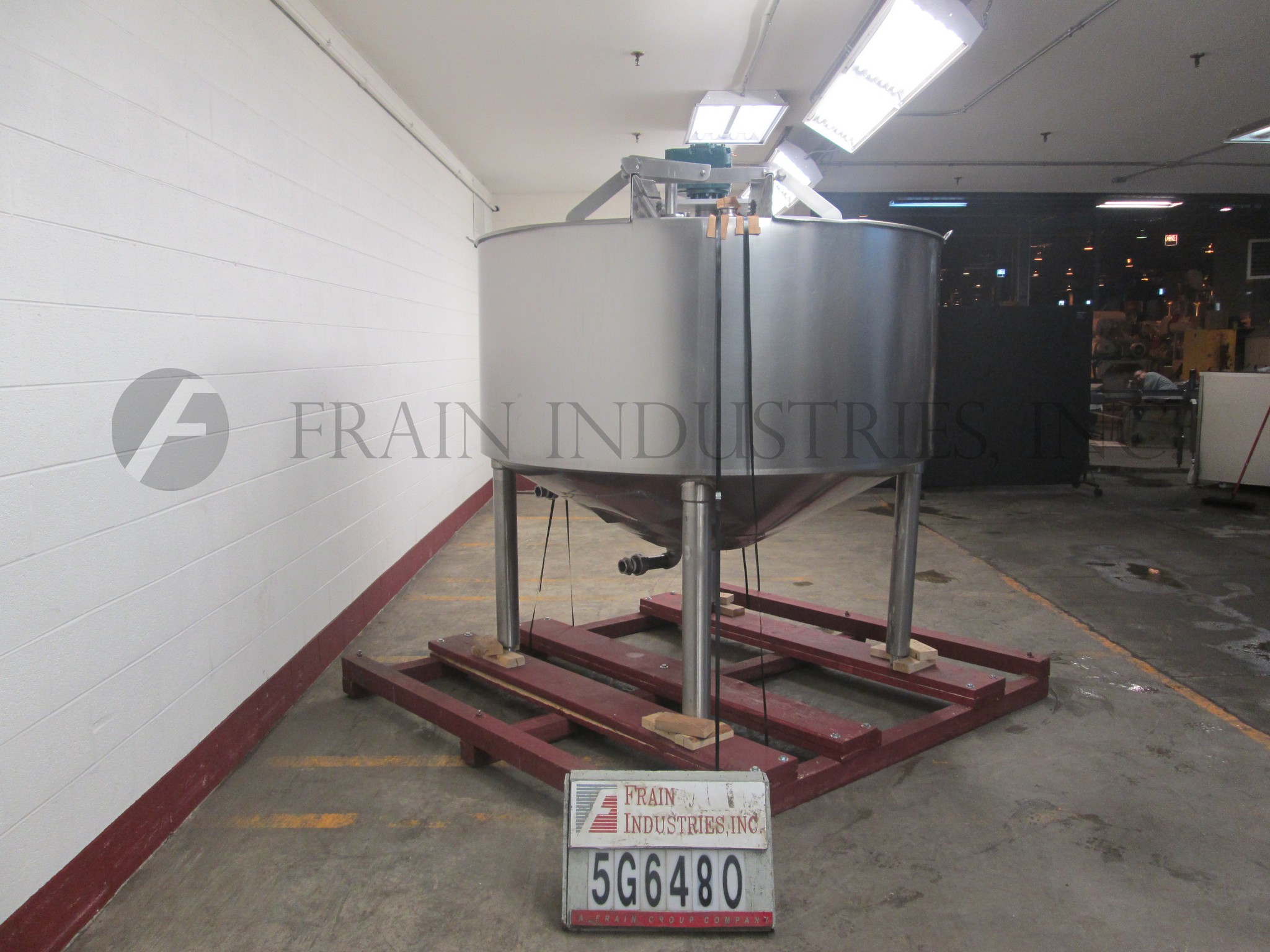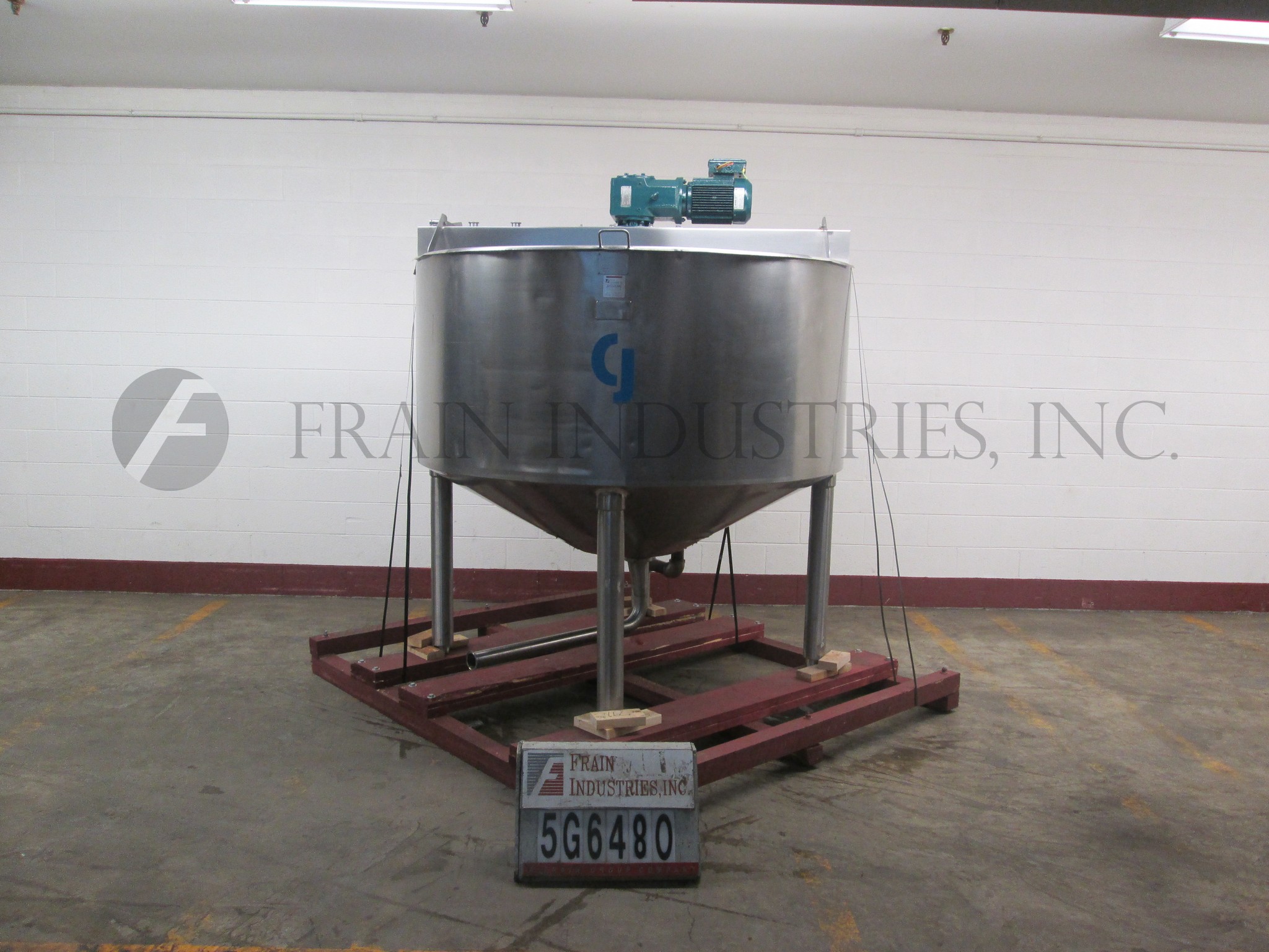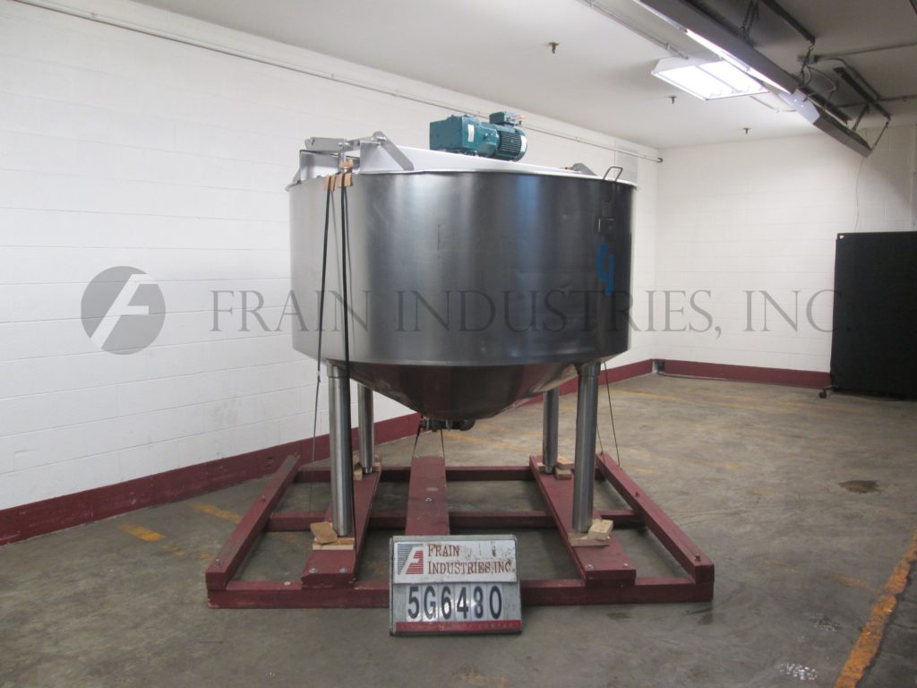 返回所有设备Chester Jensen,X70N50型,500加仑容量,304不锈钢底部夹套和绝缘工艺罐。容器尺寸:72“直径x 48”深,30”直壁和锥形底部。配备提升盖、5 Hp顶部安装的底部刮板搅拌器、(1)1”NPT底部配件,带18”离地间隙和(1)4½”OD/4”ID三夹式底部排放口,带20”离地间隙。