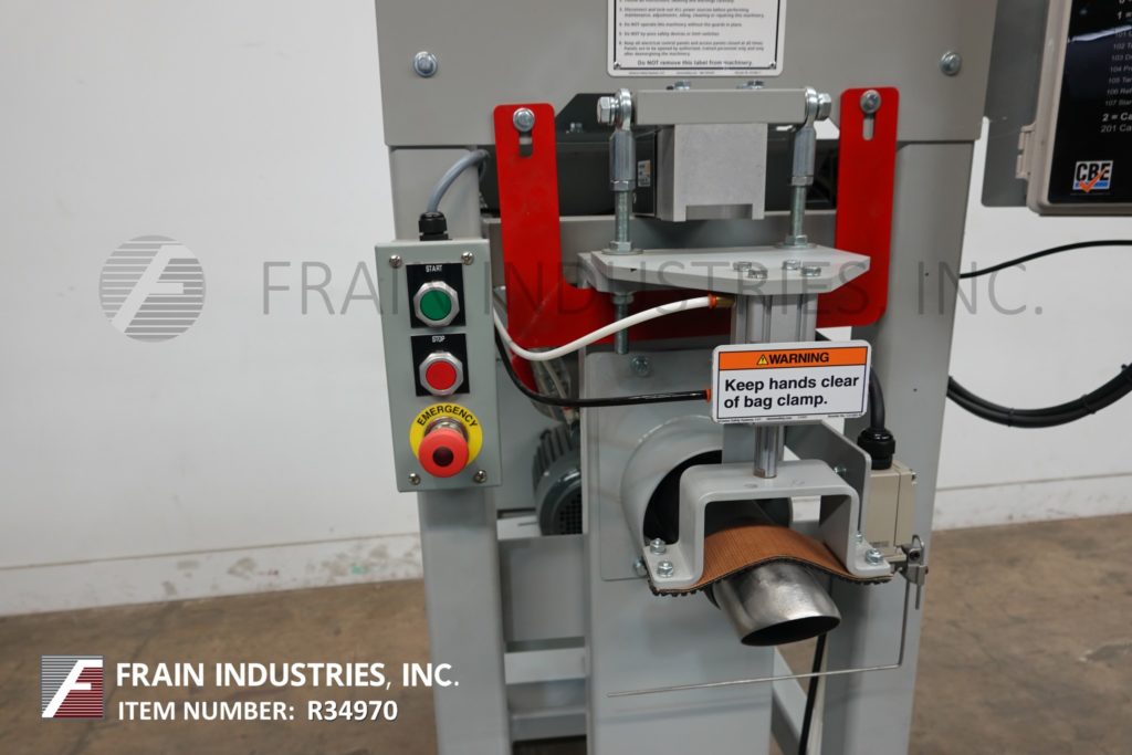 返回所有设备CBE, 205型,螺旋喂料,阀袋填料能够处理各种粉末,片状和颗粒产品额定从1到6袋每分钟-取决于材料,应用和操作人员的灵活性。所有接触部件均为304不锈钢。灌装范围:20至110磅(9-50KG)与典型秤重量精度+ / -目标重量的0.5%。配备16“长x 13“宽x 32“深度产品料斗12”OD港口和螺旋给料机5 Hp带马达驱动,不锈钢2 - 1/2“OD填充管可调袋休息,工作温度40 - 90度f .控制面板DBE填充控制器与触摸板控制,开始,停止,紧急停止按钮。安装在重型钢框架上。