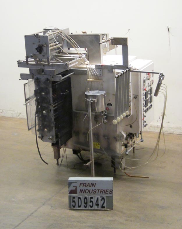 返回所有设备圈型V12Bus5,自动,垂直,型号/填充/密封机,每分钟10至70个循环(每周期5个袋子) - 取决于材料和应用。袋子:2-1 / 8“长度最小x 2”最小值。有12-3 / 4“宽水平密封钳口,单辊薄膜宽,薄膜配准,无折叠垫卷库存切断,五个3ml液体注射活塞,淬火密封钳,气刀,1杯真空往复式袋拾取,e-stop,温度控制器和屏障防护。安装在4个腿框架上。最后运行2-15/16“long x 2”宽袋,带有无折叠垫。