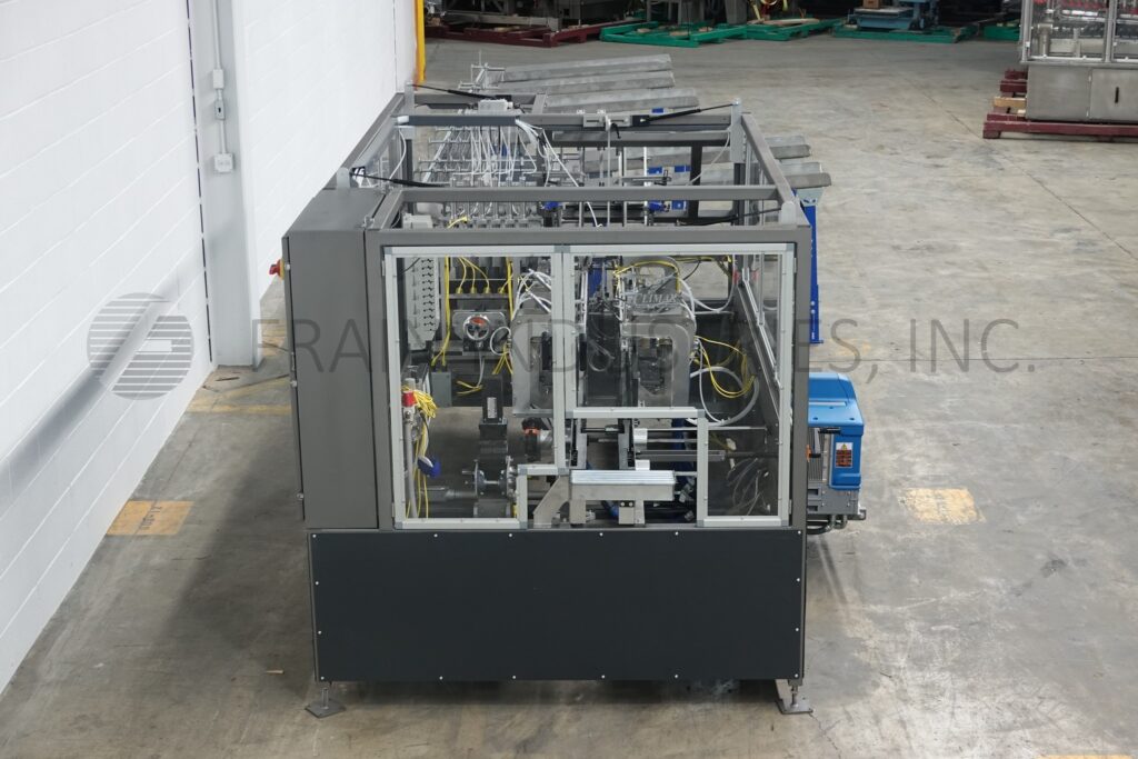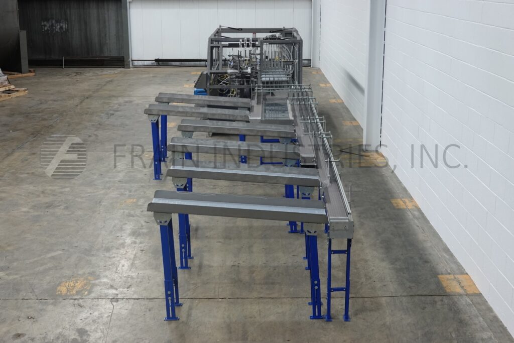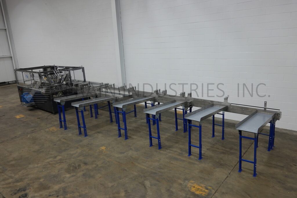 Back to All EquipmentClimax, Model C3, automatic, intermittent motion, 6 lane, side load, hot melt glue cartoner. Rated up to 15 cartons per minute – depending on materials, application, pack pattern and machine configuration. Capable of running 4 packs, 6 packs, 8 packs of 12oz and 16oz cans and 12 packs, 15 packs, 18 packs and 24 packs of 12oz cans with proper change parts. Equipped with (6) 16" wide x 60" long container feeder chutes to container orientation laner with (1) 6" wide x 282" long conveyor, (1) 6" wide x 190" long conveyor and (1) 6" wide x 96" long conveyor, (1) 18" wide x 98" long infeed conveyor, automatic blank carton magazine and pick n place, carton collation section with air knife carton open assist, set on 15" centers with 2" wide x 4" long lugs, single arm loader, Nordsen ProBlue hot melt glue system, minor / major flap closers, compression section, seko gauges and safety guarding. Control panel has A/B PLC with A/B panel view controls with A/B variable speed controllers. Mounted on carbon steel frame with two part stainless steel epoxy paint primer and finish coat with leveling legs.
