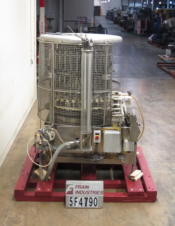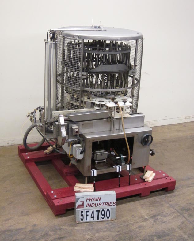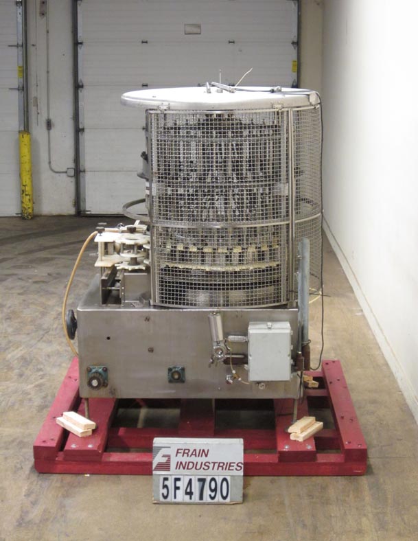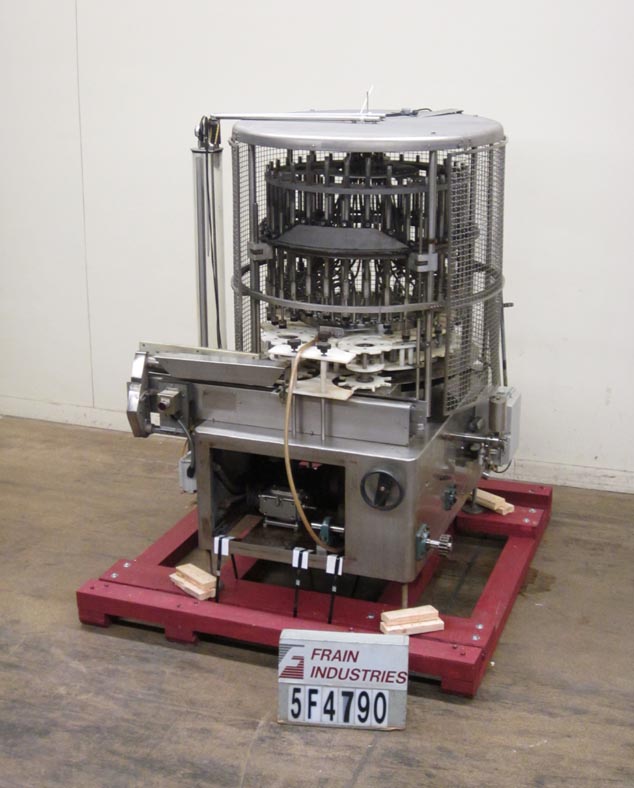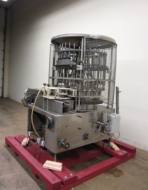 返回所有设备U S瓶子型号VA32自动50头,旋转式,真空填充物从50至320个容器/分钟额定 - 取决于材料和应用。容器尺寸范围:1“至3-1 / 4”直径x 4-1 / 4“至12英寸高度。配备32个填充头,1/2“OD和1/4”ID喷嘴,设置在4英寸中心,配备56英寸的长x 2-1 / 2“宽产品输送机,带有蜗杆螺钉到饲料和放电的星形轮,开销产品进料系统具有溢出,底部填充,无容器/无填充真空系统,具有隔音泵,安全防护和安装在4个腿基架上。