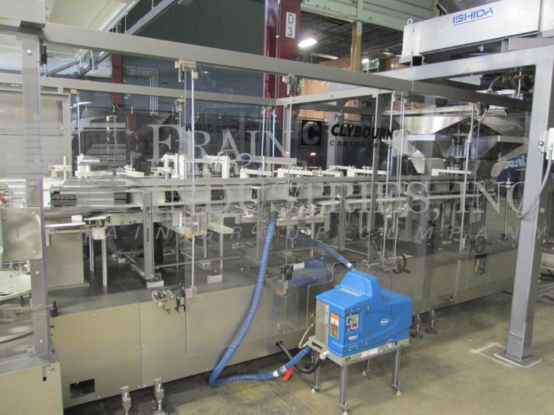 返回所有设备Clybourn,312-E型,Spectrum系列,自动立式,热熔胶,纸箱机额定速度为每分钟40至110箱-取决于材料和应用。尺寸范围:3英寸至10英寸长;宽度为1-1/2英寸至4英寸;深度为5英寸至12英寸,带有适当的更换零件。单链装置目前设置在12“中心,长度为7-1/2;宽度为2-1/4;4“深度固定产品铲斗。配备130“长(2)链条驱动的空白纸盒库,双头旋转式捡拾器,6袋旋转式产品漏斗填充系统,带有振动电机,用于放置产品。A/B CPU、电子凸轮加5000触摸板(带读数)、变速驱动控制器和联锁安全防护装置。