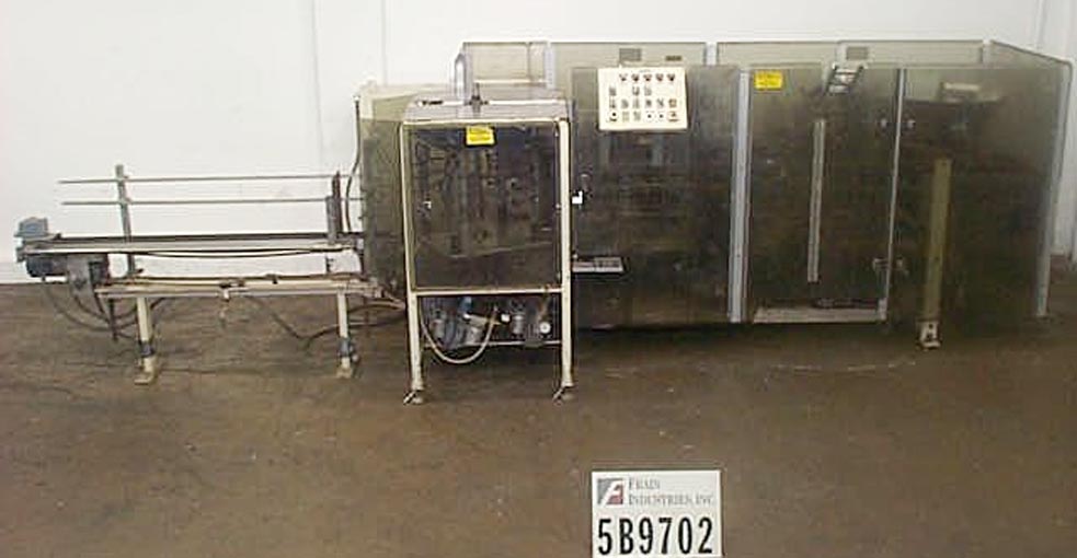 返回所有设备自动,连续运动,热熔胶,垂直纸箱设置在10英寸中心。纸箱尺寸范围:1"至8-1/4"长度;3/4"到3-1/4"宽度;深度为4-1/4"至11-1/4",可适当更换零件。配备5 '动力库,4头旋转取放,产品过渡漏斗,AB PLC, E-stop和联锁保护。安装在可调节高度的腿。速度取决于材料和应用。