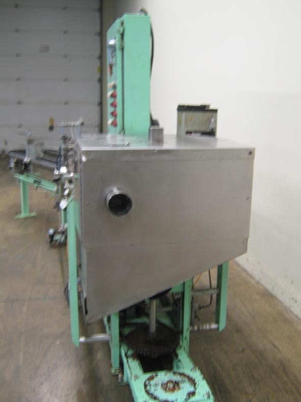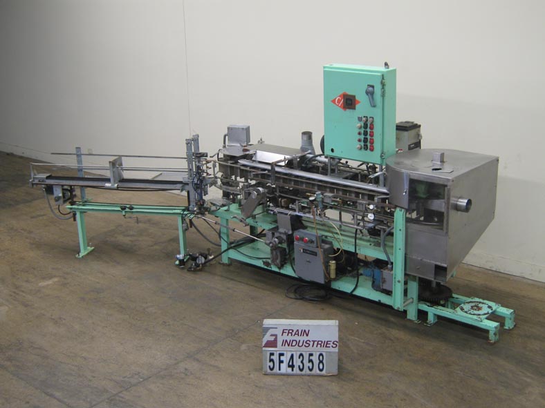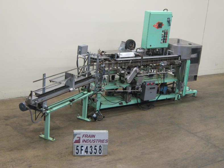 返回所有设备自动,连续运动,垂直纸箱每分钟20至100箱-速度取决于材料和应用。纸箱尺寸范围:1"至4"长度;3/8"到2-1/2"宽度;深度4-1/8"至8"。配备了72“长空白纸箱杂志,往复式选择和地点,目前2链载体系统上设置5”中心,底皮瓣意见和犁,八口袋旋转式容积加油站,热熔胶单元,皮瓣意见和犁,不锈钢和聚碳酸酯安全保护,和按钮控制。