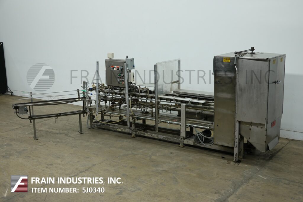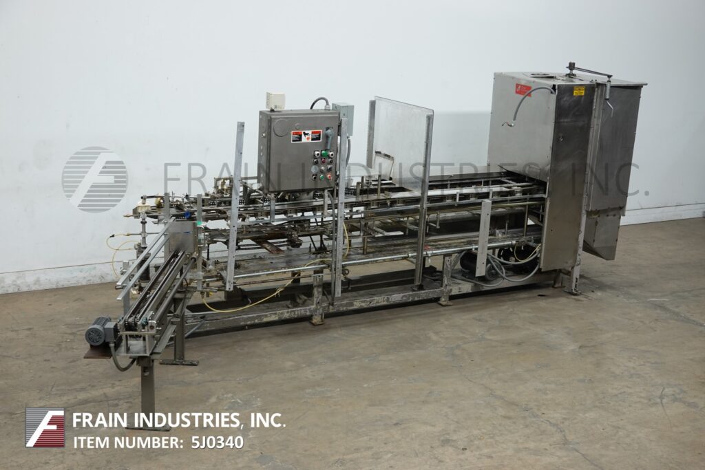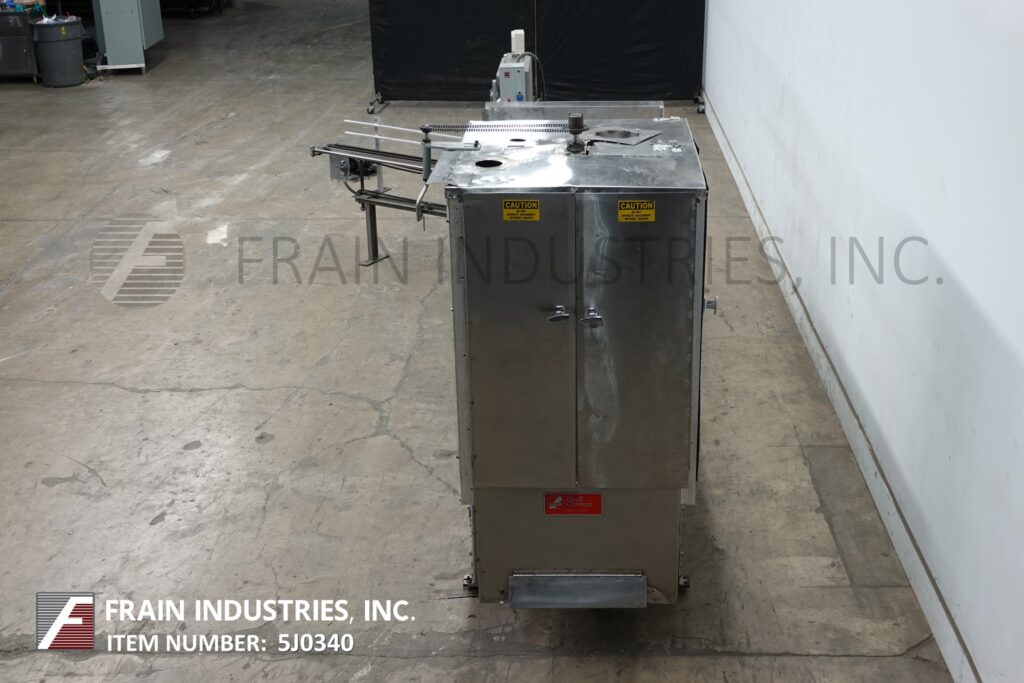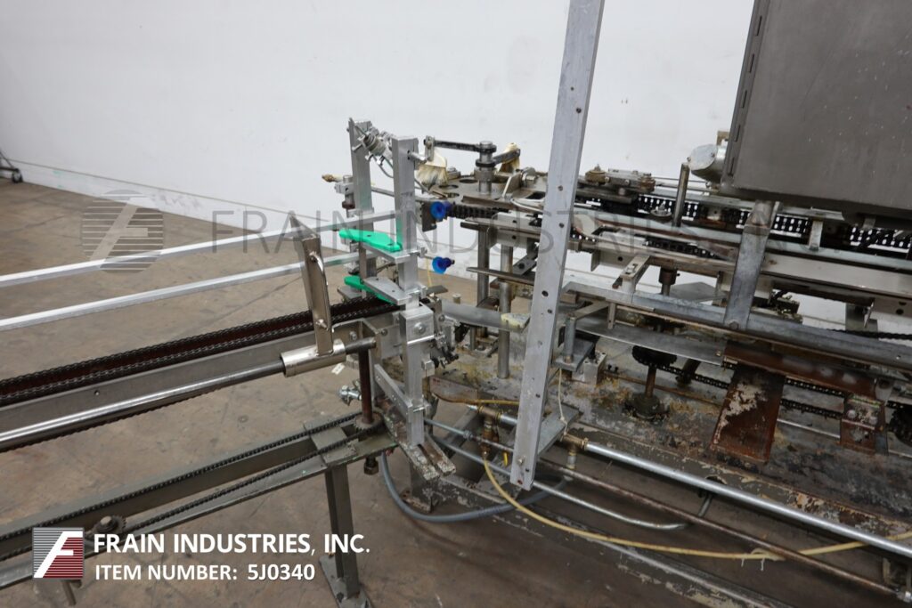 Back to All EquipmentClybourne, Model CHL-7, Automatic, vertical, volumetric, continuous motion, cartoner. Rated from 20 to 100 cartons per minute – depending on materials and application. Carton size range: 1" to 8¼" in length x ¾" to 3¼" in width x 4¼" to 11¼" in Depth with proper change parts. Equipped with (2) chains currently set on 10" centers with fixed product buckets and has 64" long (2) chain powered blank carton magazine, with (4) pocket rotary product feeder. rotary volumetric product feeder with feed funnels. Control panel with start, stop, e-stop push buttons and saftey guarding.