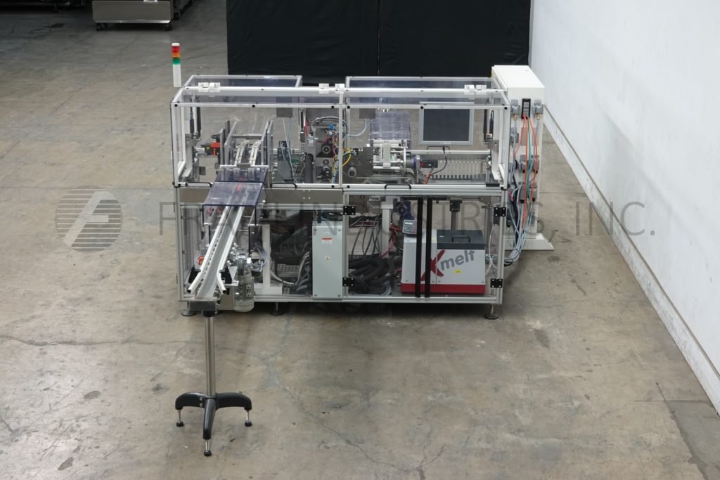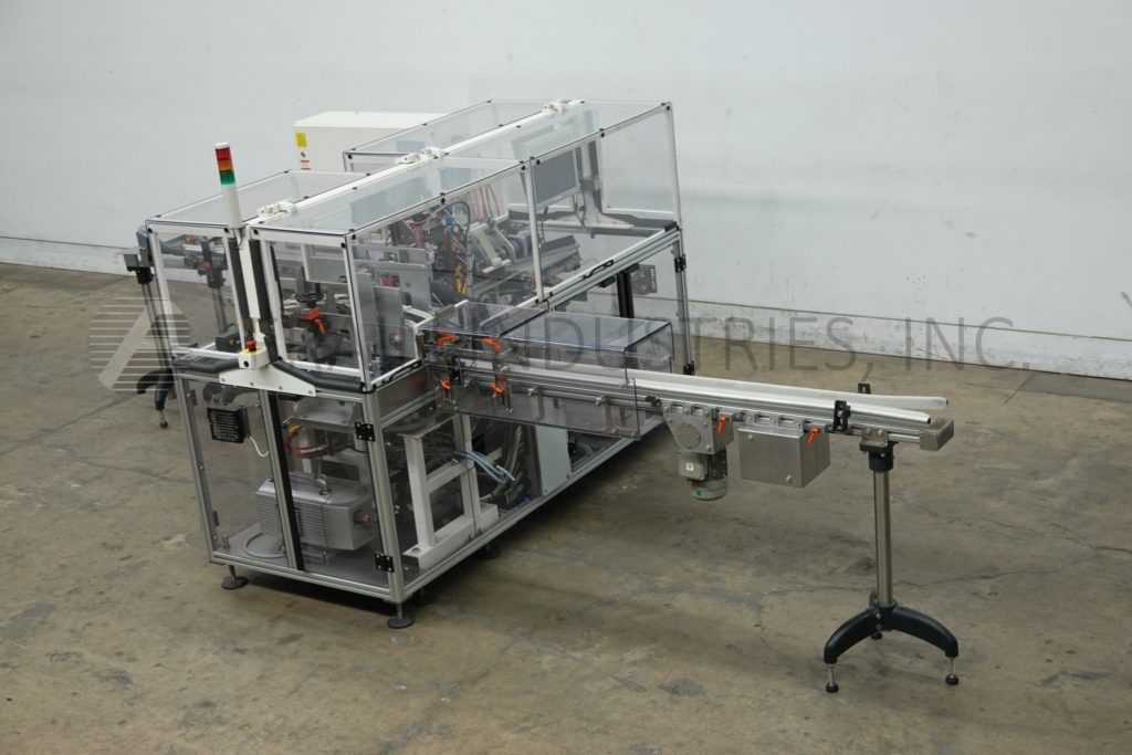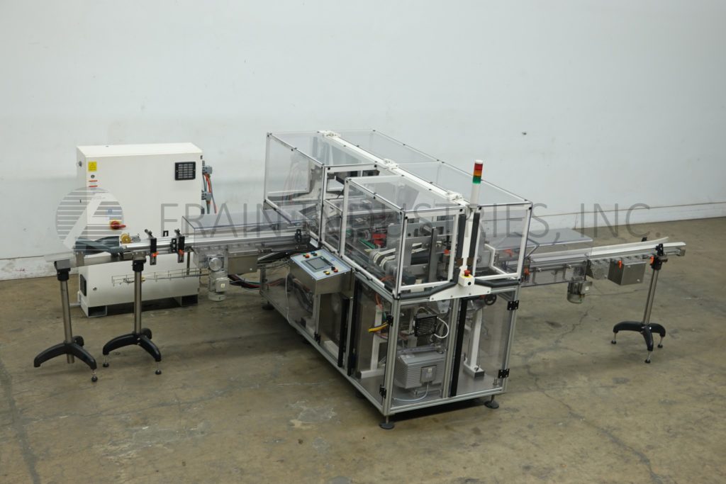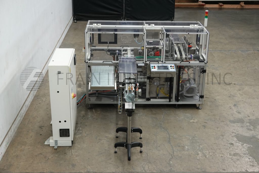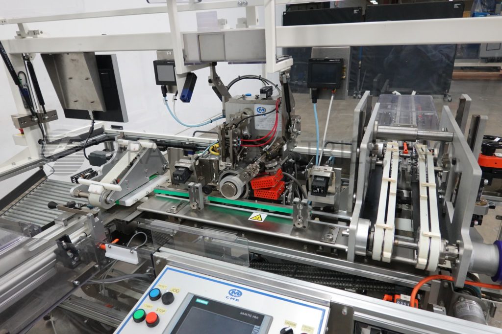 Back to All EquipmentCME Ltd, Excise stamp applicator. Rated from 10 to 120 stamps per minute depending on materials application and machine configuration. Can handle standard excise stamp sizes with proper change parts. Carton size range 1" to 7½" in length; 1" to 4½" in width; ½" to 2" in depth. Equipped with a 80" long infeed belt overhead transfer belt with cleats set on 8" centers, 48" long belt through servo driven stamp applicator with hot melt glue applicator and vision system to track stamp usage with 60" long discharge belt. Control panel has touch screen HMI. Mounted on heavy duty frame.