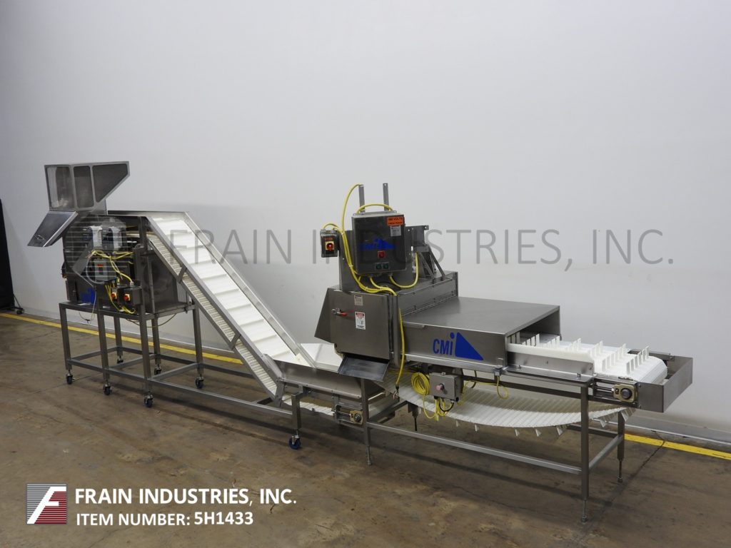 返回所有设备CMI设备,型号MI05,分节器和叶片清洁器。配备了一个19英寸宽x 91英寸长的cleated摇篮输送机,3英寸高cleats设置在6英寸中心,由1 / 2马力驱动,(5)12英寸直径的切割刀片设置在3英寸中心,由3马力驱动和卸料槽用于修剪端部。Segmentor卸料到16英寸宽x 166英寸长的楔形斜输送机上,1¼英寸高楔形安装在8英寸中心,由1马力驱动。分段产品是下降通过一个穿孔溜槽与2马力鼓风机,以清除树叶和小块吹起来,并进入一个收集室。控制面板与按钮启动/停止和变速控制皮带和刀片。