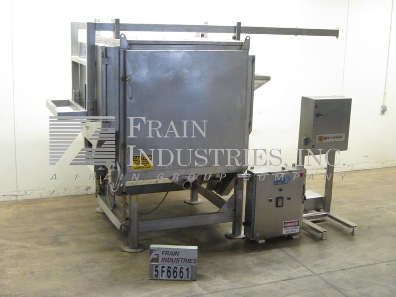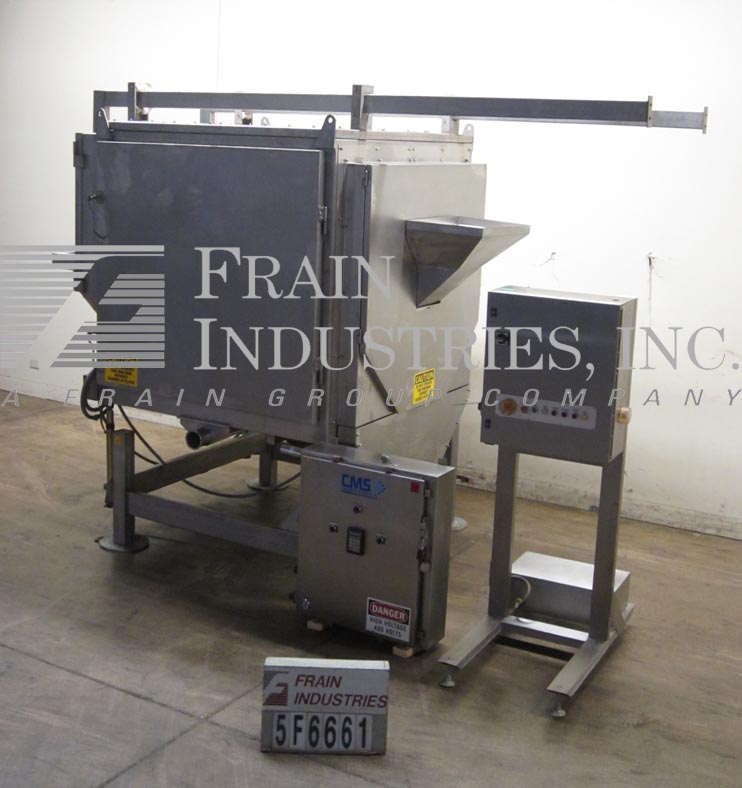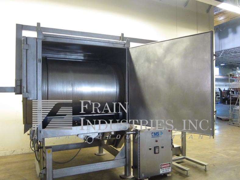 返回所有设备CMS型WH4860CP连续,不锈钢,包覆滚筒。配备72“长48”ID涂层圆柱,(12)5“高肋骨,两个60”x 60“外部访问门两侧,10“x 10“产品进口,9”x 6“底放电结束,2”卫生入口57“地面间隙,2 - 1/2”底部排水和1 - 1/2惠普美国宝德公司开车。该装置设有机械倾斜机构,允许高达12英寸的向下倾斜,以方便产品排放。安装在S/S框架上。