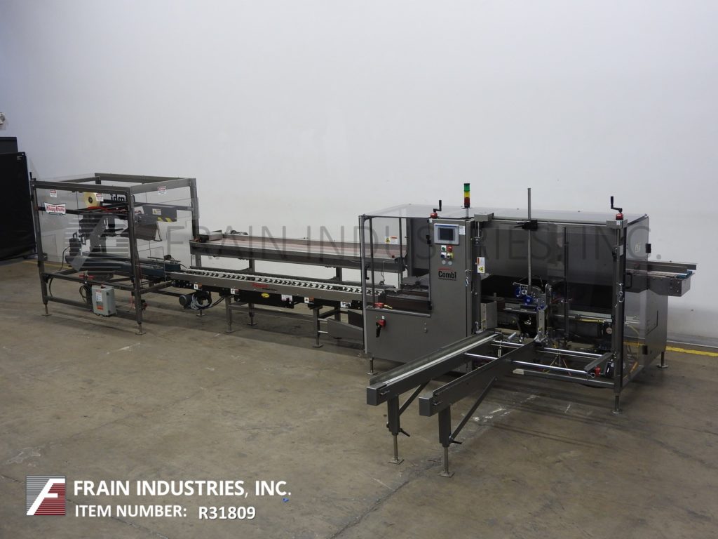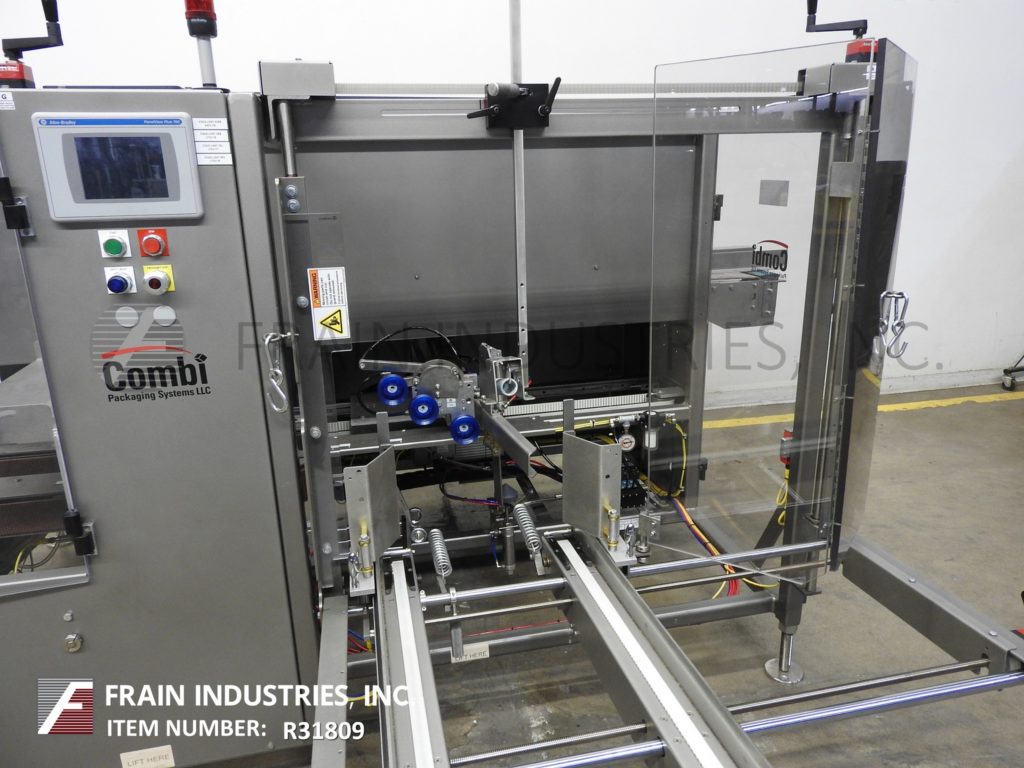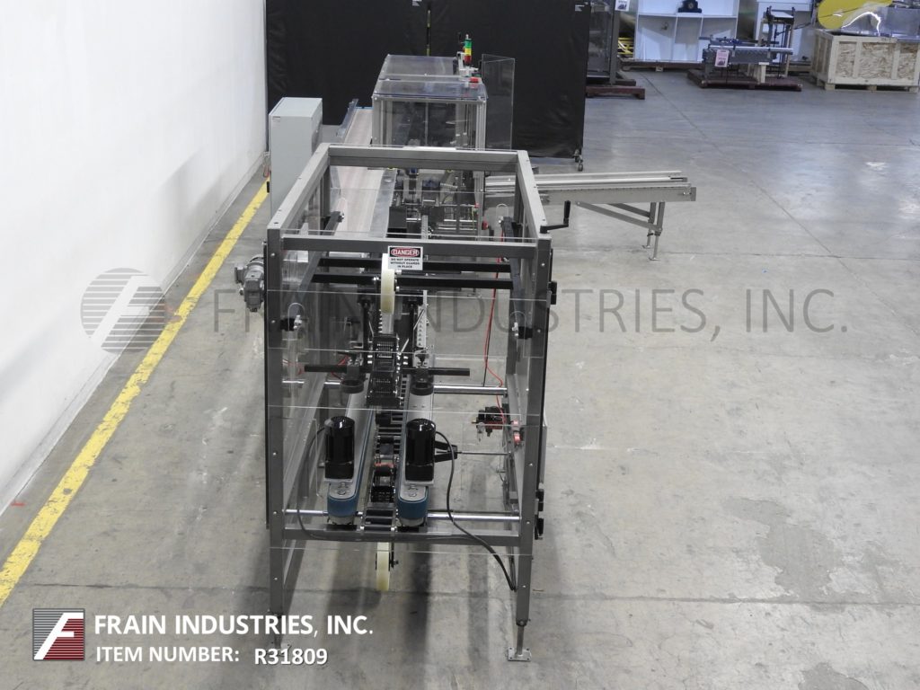 返回所有设备Combi America Model 2ezhs,Ergopack,自动,壳体包装系统。每分钟5至12例 - 取决于材料,应用,机器配置和操作员灵活性。壳体尺寸范围:8“至24”长度x 6“至16”宽度x 5“至18”高度。重型焊接钢结构。配备易于装载,80英寸长自动空白盒杂志,(5)吸盘式PIC-NAPLICE案例竖立器,小型和主要襟翼更近,44“LONG X 3-1 / 4”宽双侧皮带盒索引,3“底部磁带头,手曲柄无工具可调,真空系统和互锁安全防护。7½“宽x 143”长达德里林产品输送机平行于8英寸宽x 70“长盒式输送机,70”长x 3“宽双侧夹持带通过封口机和2”顶/底磁带头。系统是手工曲柄调节随着互锁的lexan安全保护和调平腿。控制面板具有带A / B面板视图的A / B控制器,使用以太网接口端口和Statis Light Bar具有A / B面板视图和安全复位,启动,停止和电子停止控制。安装在高度可调节框架上腿。