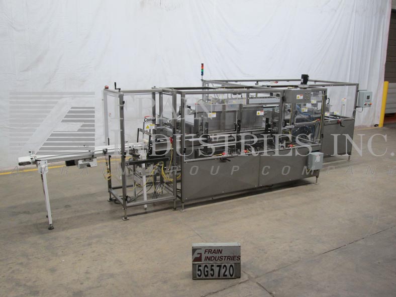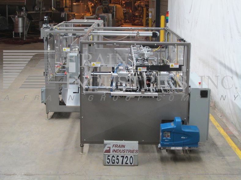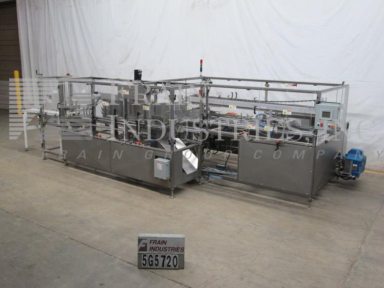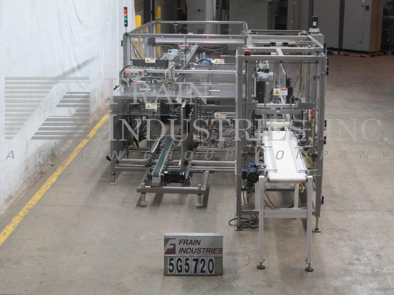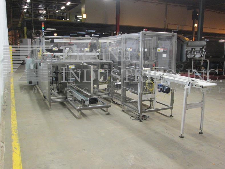 返回所有设备康比美国,型号CHL,自动,装箱,包装和热熔密封系统,额定每分钟1至16个装箱-取决于材料,应用和机器配置。系统包括模型HCE例安装工人、前后封箱机配备动力空白杂志,真空吸盘选择n,平方安装工和案例部分,顶部和底部拖着转移输送机,诺信专业蓝色热熔胶系统,主要/次要皮瓣意见,与前后ram手臂压缩。CHL型卧式箱式包装机,具有产品输送、产品上卸、上堆垛、整理系统,单滑枕臂产品装载机。控制面板有A/B CPU控制器与面板视图,变速控制与启动和e-stop按钮,联锁安全保护和统计灯条。安装在重型基础框架。
