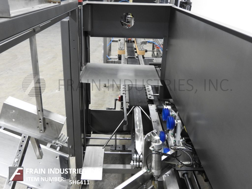 返回所有设备Combi美国,EM3型Ergopack,箱式包装系统。根据材料、应用、机器配置和操作者灵巧程度,每分钟可达5 - 10个病例。Case size range: 13" to 24" in Length;7¾“到16”宽度;6英寸到16英寸的高度。配有42“长空白杂志,(4)吸盘往复式选择和地点,轻度和重度皮瓣意见的情况下,机械推杆,12“宽x 144“长Intralox产品输送机41½“饲料高度平行16“宽x 70”长橡胶皮带输送机和手动曲柄可调。控制面板带有Koyo控制器,(2)手循环控制和按钮操作控制。安装在基础框架与水平腿。