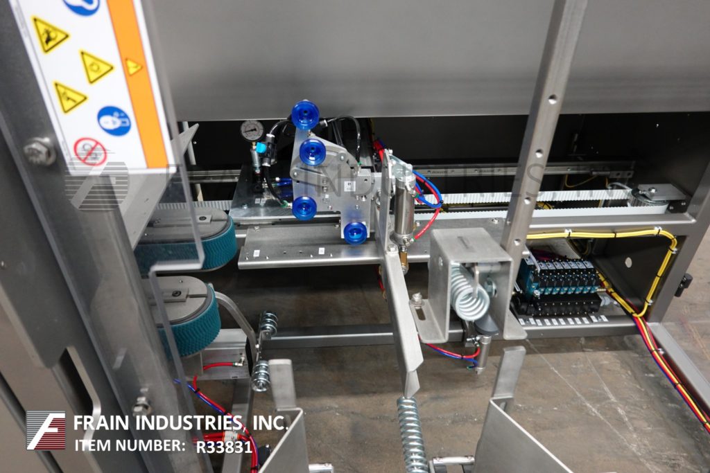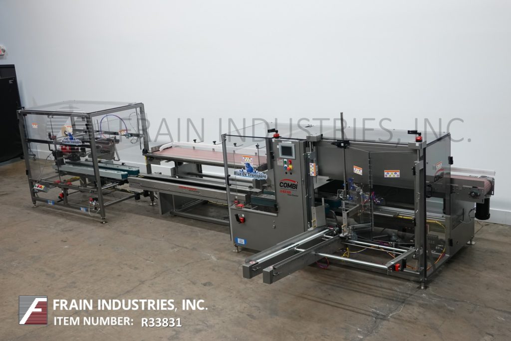 返回所有设备Combi America, Model 2EZHS, Ergopack。每分钟5 - 20个病例-取决于材料,应用和操作者的灵巧度。外壳尺寸范围:8"至24"长度;宽度6"至16";身高5英寸到18英寸。配备48"长空白盒杂志,吸盘往复挑选和地方,小和主要的襟翼关闭器,机械推杆,2"磁带头,6"宽x 192"长产品输送机80"长双向积累和包装站平行运行12"宽x 94"长箱子输送机。顶部箱体锥度配备小襟翼关闭,主要襟翼犁,3“宽双侧夹持皮带,2”顶部/底部磁带头,手曲柄可调Siko规和联锁Lexan安全保护。