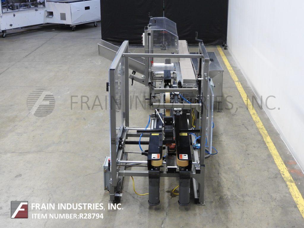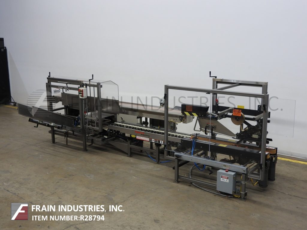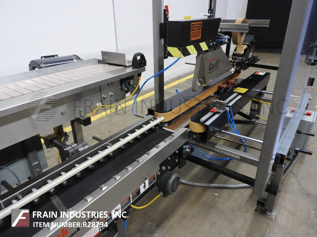 返回所有设备Combi America,型号E-2500 Ergopack,装箱系统。根据材料、应用、机器配置和操作人员的熟练程度,每分钟可测试5到12个案例。外壳尺寸范围:8½“至20”长度;宽度4-3/4“至13½”;4英寸至19-1/2英寸高。配有42“长空白杂志,(3)吸盘往复式选择和地点,轻度和重度皮瓣意见的情况下,机械推杆,7½“宽x 143“长缩醛树脂产品输送机平行8“宽x 70”长输送机,70“长x 3“宽双爪带通过封口机和2”顶部/底部胶带。系统为手摇曲柄可调,配有莱克森联锁安全保护及调平支腿。控制面板上设有两个手动循环控制和按钮操作控制。
