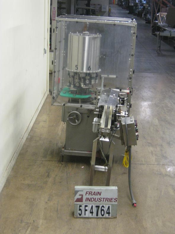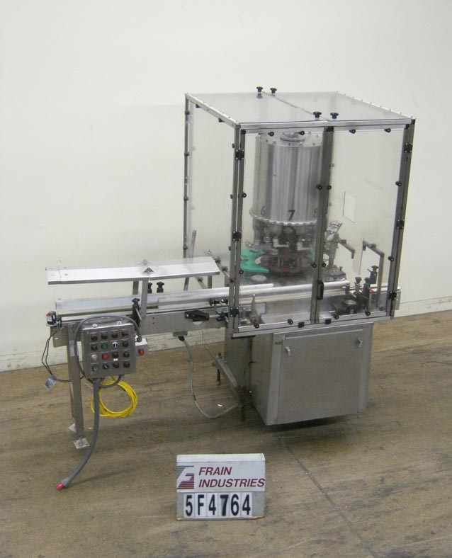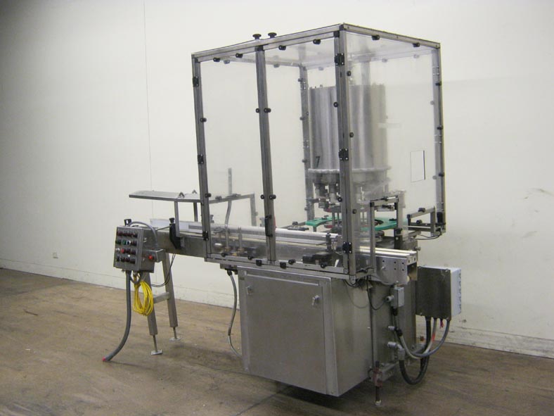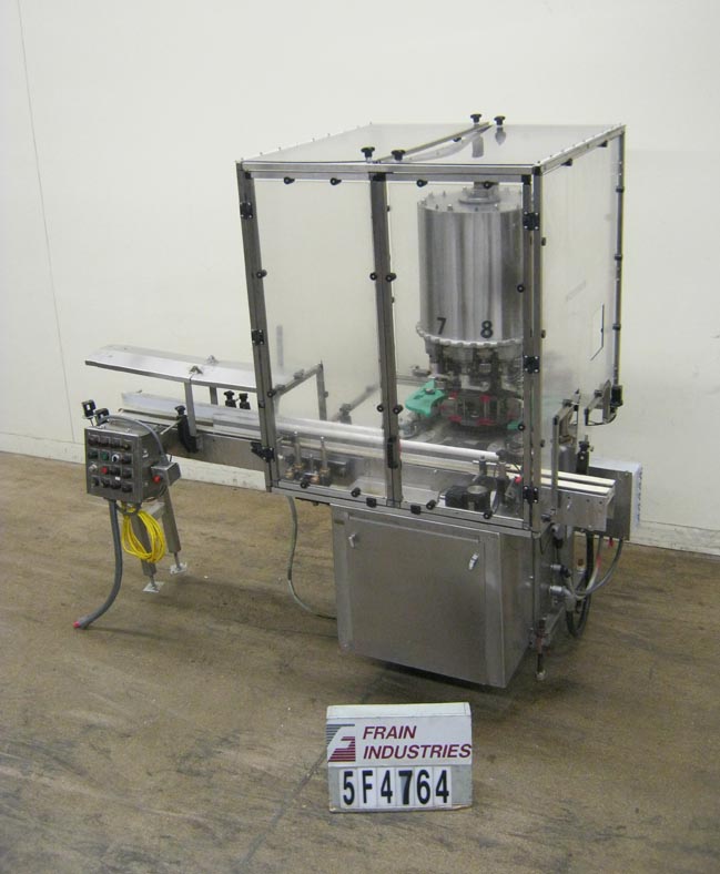 返回所有设备自动,8头,旋转卡盘夹,从120到300个容器/分钟 - 速度取决于材料和应用。设置在6-1 / 2“中心,并可以适当的变化部件处理直径的最大帽尺寸89毫米,容器可达5-5 / 8英寸。配备96“长X 3-1 / 2”宽集装箱输送机,蜗杆螺丝到料进料和排气,(8)扭矩开口卡盘风格封盖头,无容器/无盖帽。控制面板启动,停止,自动,慢跑控制,e-stop,互锁安全保护和安装在(4)腿基架上。