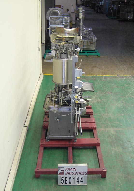 返回所有设备自动,8头,旋转旋盖机与5-1/2“节距,能够从90到240集装箱每分钟的速度-速度取决于材料和应用。瓶盖尺寸范围:高达89mm(需要适当的更换部件)。配有108"长3"宽的输送机,星轮进料,瓶夹手指,跨抓盖转移,15"直径转移轮到容器和星轮卸料。安装在可调节高度的腿。