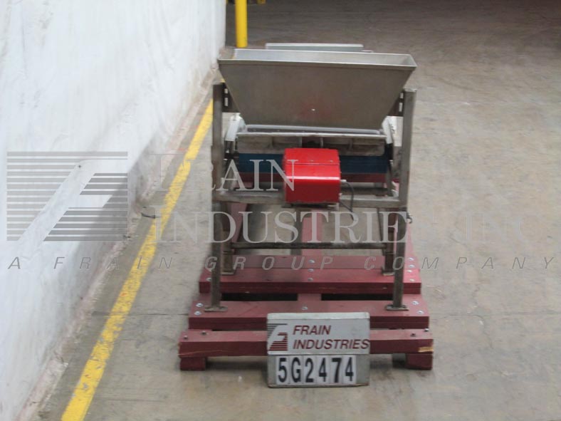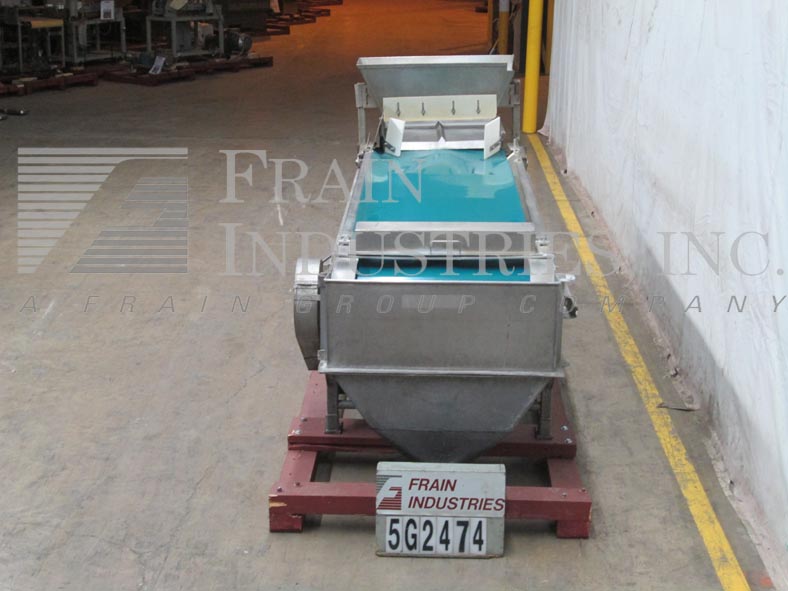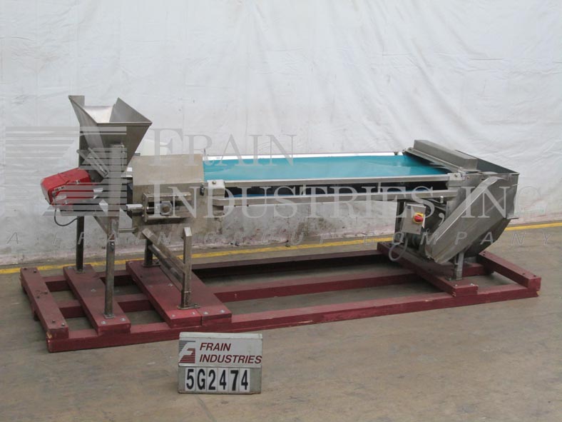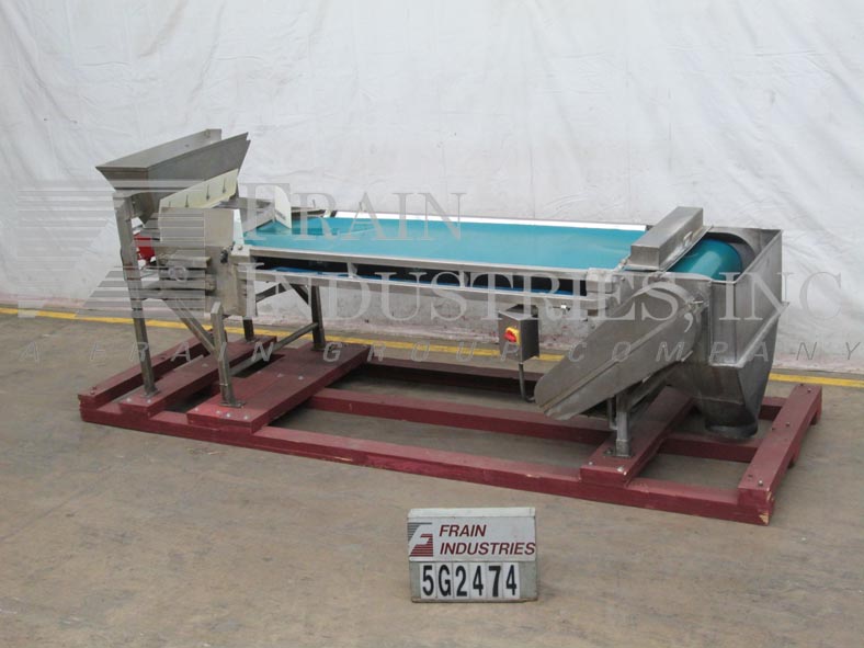 返回所有设备34“宽x 120”L卫生带检查输送机。全不锈钢框架,氯丁橡胶带。配备在传送带上的磁力分离器,34“长x 8”宽,顶部安装饲料料斗,41“长x 15”宽x 16”深,与Syntron振动给料机,2通道不锈钢,30“宽x 20”长2-1/2”侧壁。36"高进料侧,35"高出料侧与不锈钢出料溜槽直径10"出口。输送机由一台1hp齿轮马达驱动,带有a - b30a断开开关。