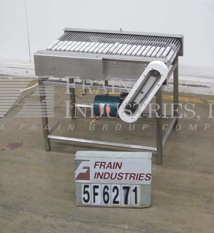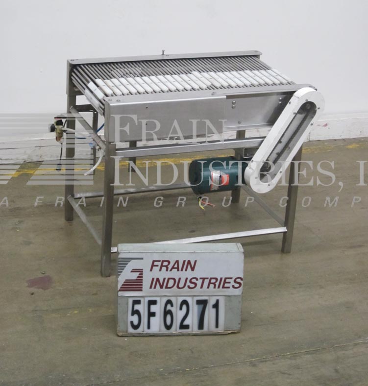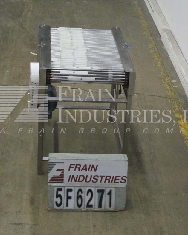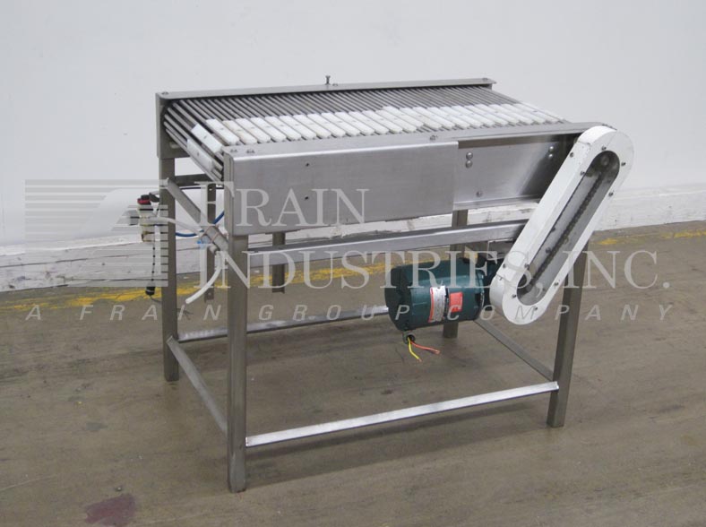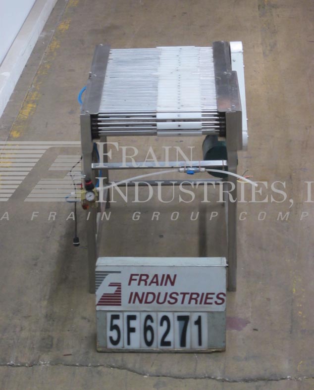 19“宽X 40”长不锈钢,气动驱动1:2,Laner输送机。配备6英寸宽x 1“长分隔件,34个”高进入/放电和½“杆上的¾”中心。