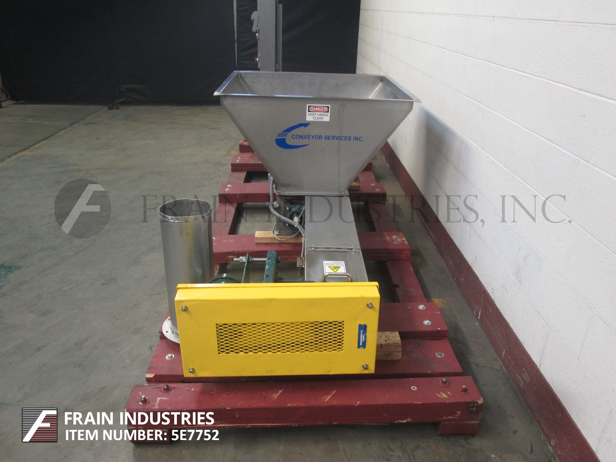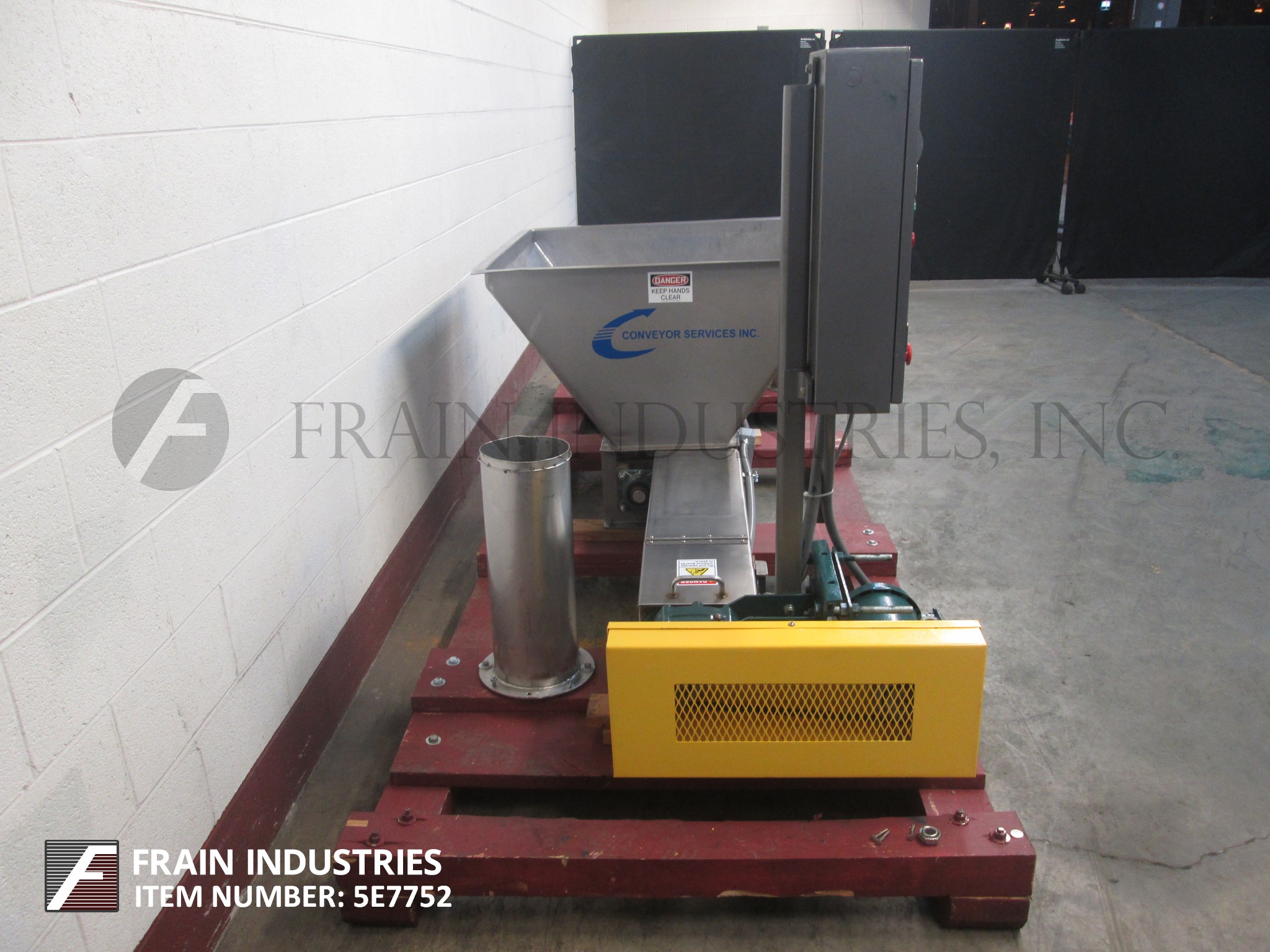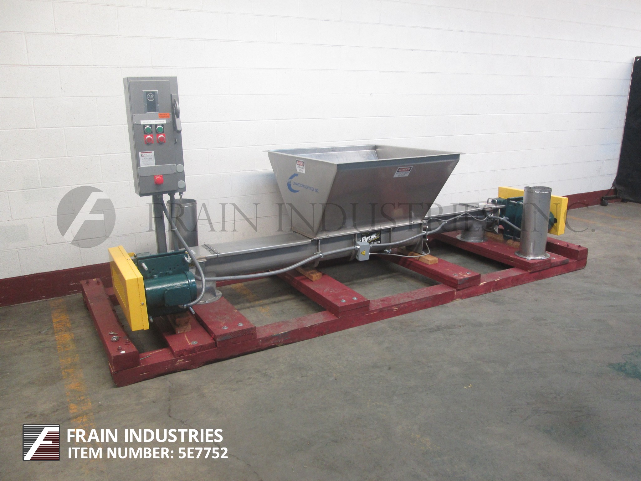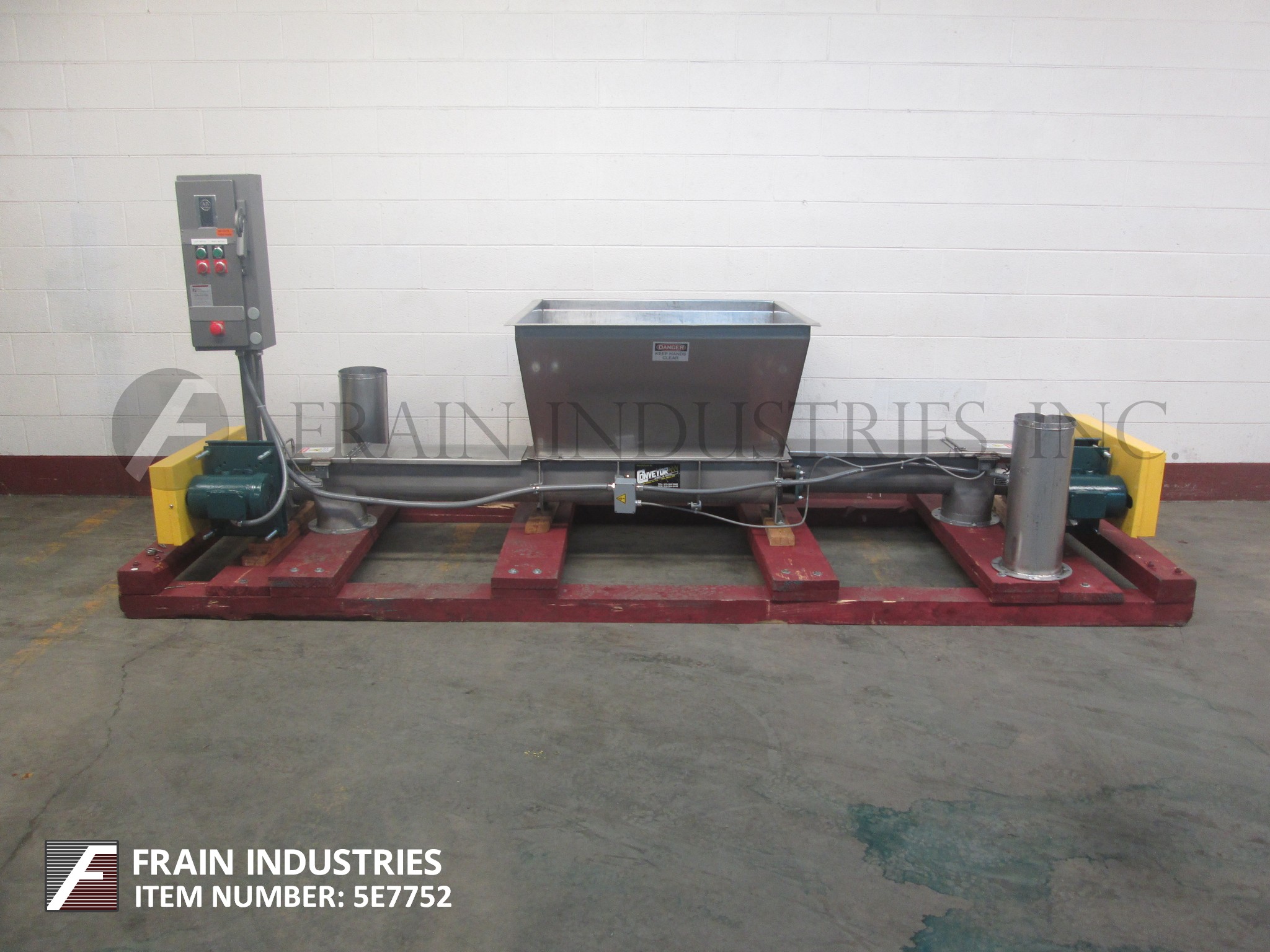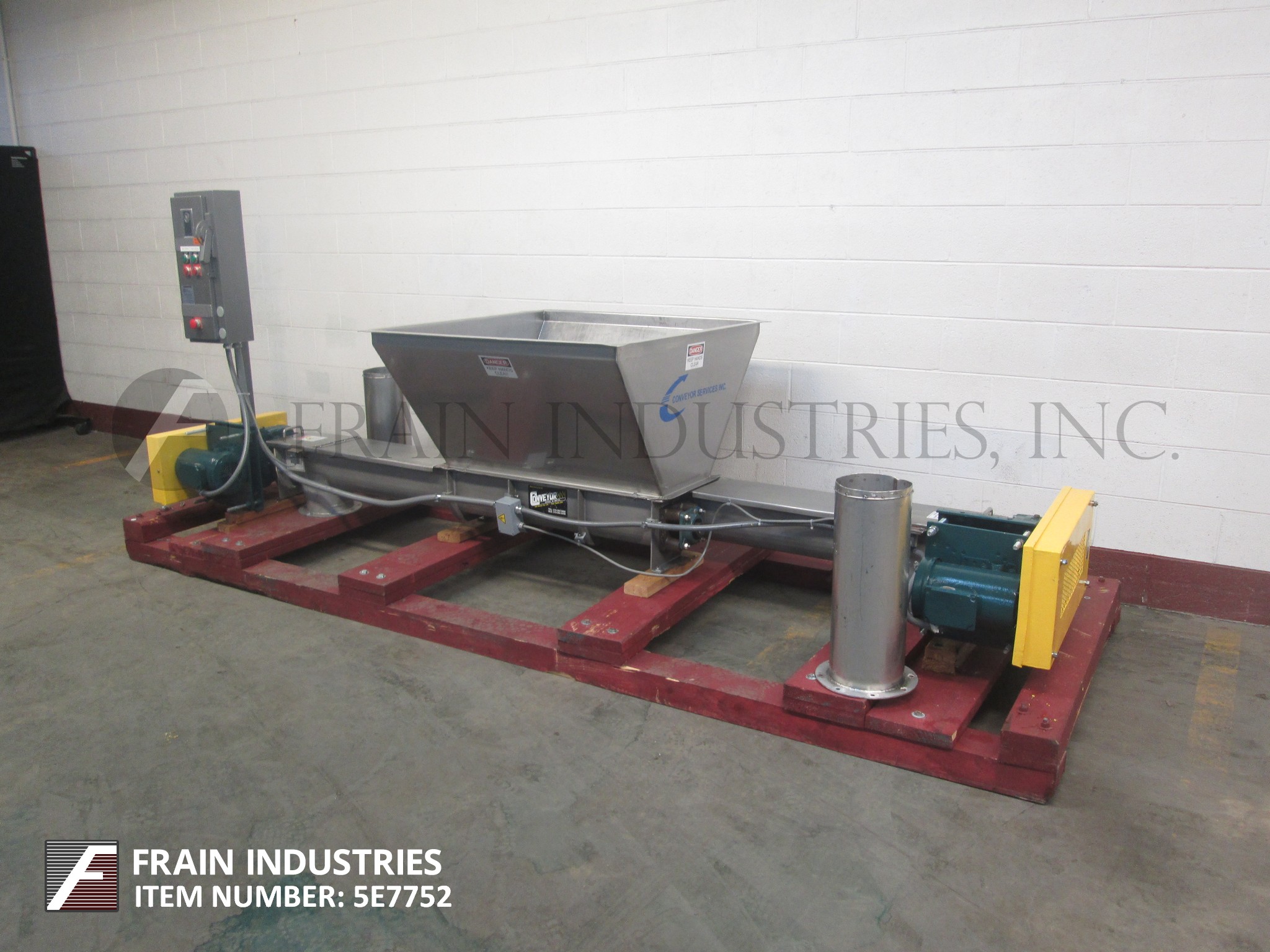 返回所有设备传送带服务,双向,双螺杆螺旋式喂食器。配备(2)6“直径螺钉,直径为3”中心,具有3“中心,12英尺不锈钢产品料斗测量40”长×40“宽X 22”高和(2)12“OD / 8”ID法兰放电港口有½“螺栓孔3”中心。由(2)2 HP驱动器提供动力,轴速度为60rpm的最终轴速度。
