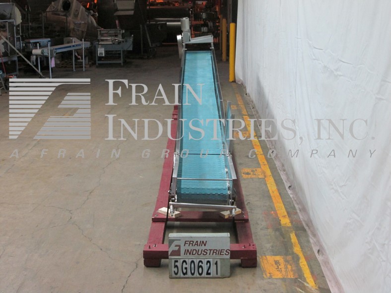 19.5“W x 264”L不锈钢,塑料Intralox带式输送机,速度取决于材料和应用。配备固定速度3/4马力驱动器,8“高固定导轨,安装在固定高度腿,和47”输送机高度。