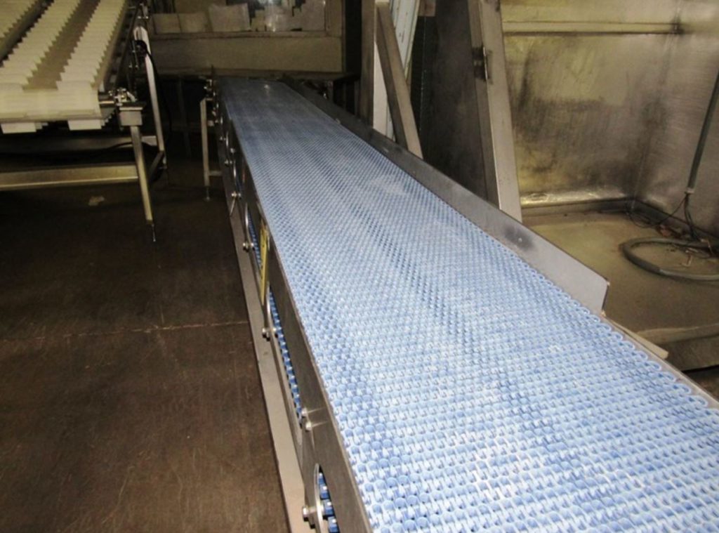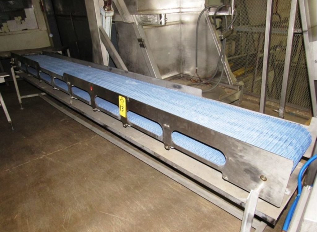 19“宽x 160”长不锈钢台面输送机。19“宽和160”长的Intralox带有31“到35”的进料和放电范围。配备1马力驱动器和安装在水平腿。
