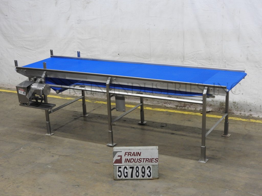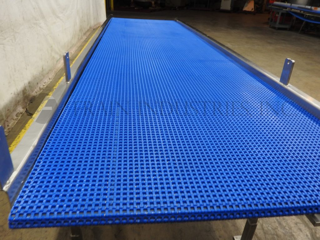 33“宽X 132”长不锈钢台式输送机。33英寸宽和132英寸“长的内部型式带有进给/放电高度为39”。配有1个HP驱动器并安装在(6)腿上。